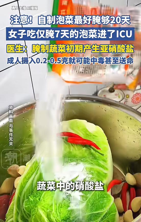 光明网2026-04-27《家里泡菜刚腌一周就吃,女子口唇变“蓝紫色” 住进ICU!医生提醒》