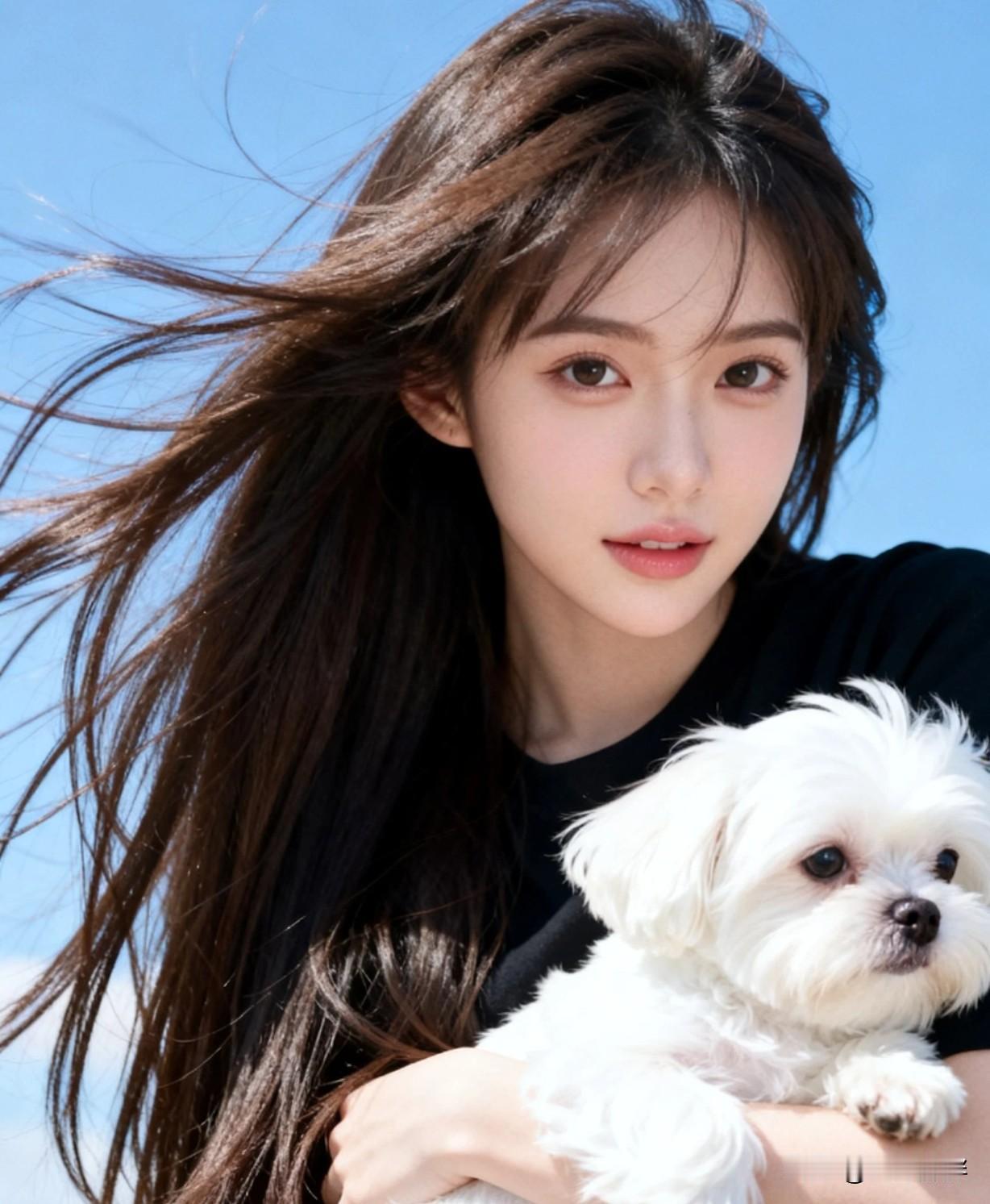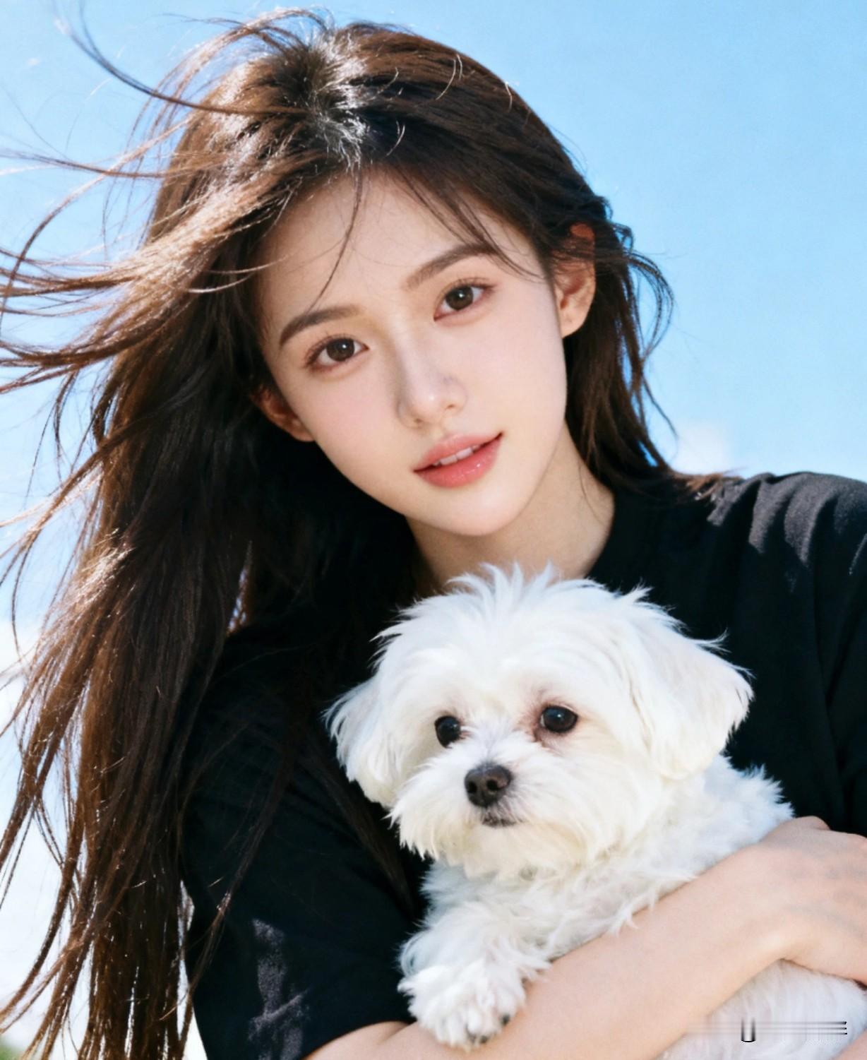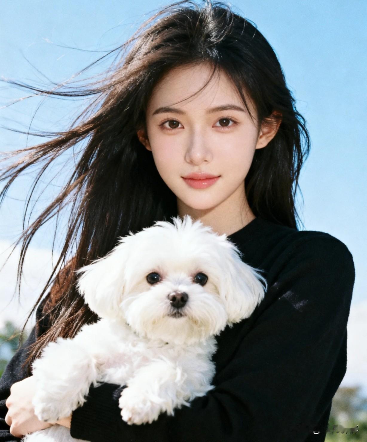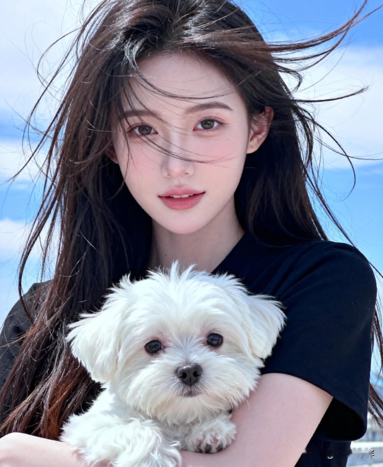 阳光下的甜美笑容,美女与萌宠的温馨时光🌞🐶这样的日子你羡慕吗?