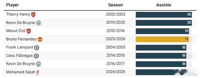 曼联2比1布伦特福德 欧冠资格已经基本到手了,曼联球迷还有一个期待,就是希望剩余4场,B费还能有至少2个助攻,这样他就能打破亨利的单赛季20次助攻纪录,成为英超单赛季助攻王!德布劳内曾追平亨利的纪录,但未能超越。B费目前的助攻数来到了19个,曼联剩余对手利物浦、桑德兰、森林、布莱顿,感觉B费能实现这一伟大的里程碑。曼联