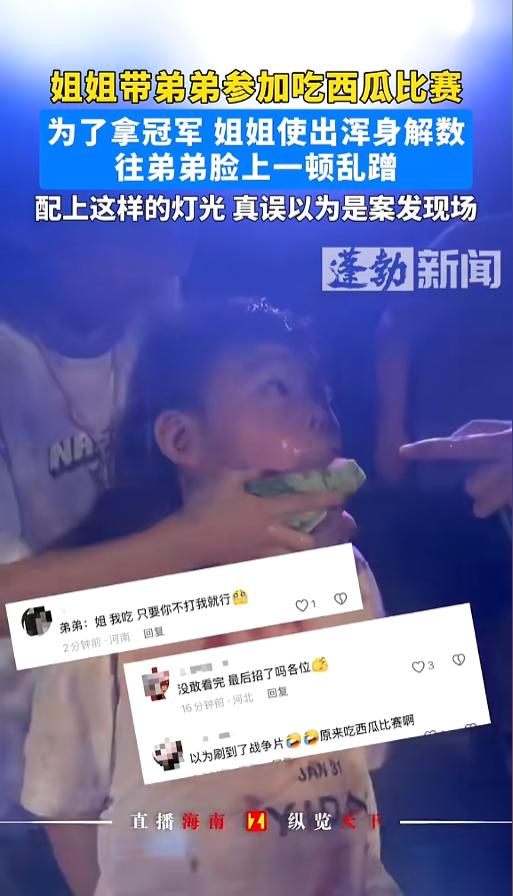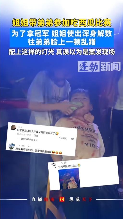 信息来源:《姐姐带弟弟参加吃西瓜比赛,配上这样的灯光 真误以为是案发现场》蓬勃新闻