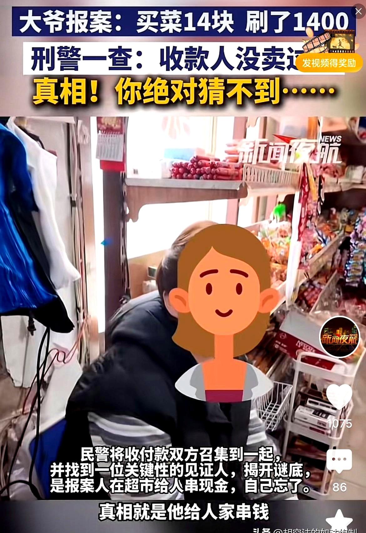 有赌的成分!黑龙江兰西,一大爷报案称,自己买菜花了14元,误扫了1400元。民警通过支付记录找到收款人,可收款人却说,自己压根就没卖过菜。民警通过查看店里的监控,真相也终于浮出水面。网友:看着不太老实的样子!
