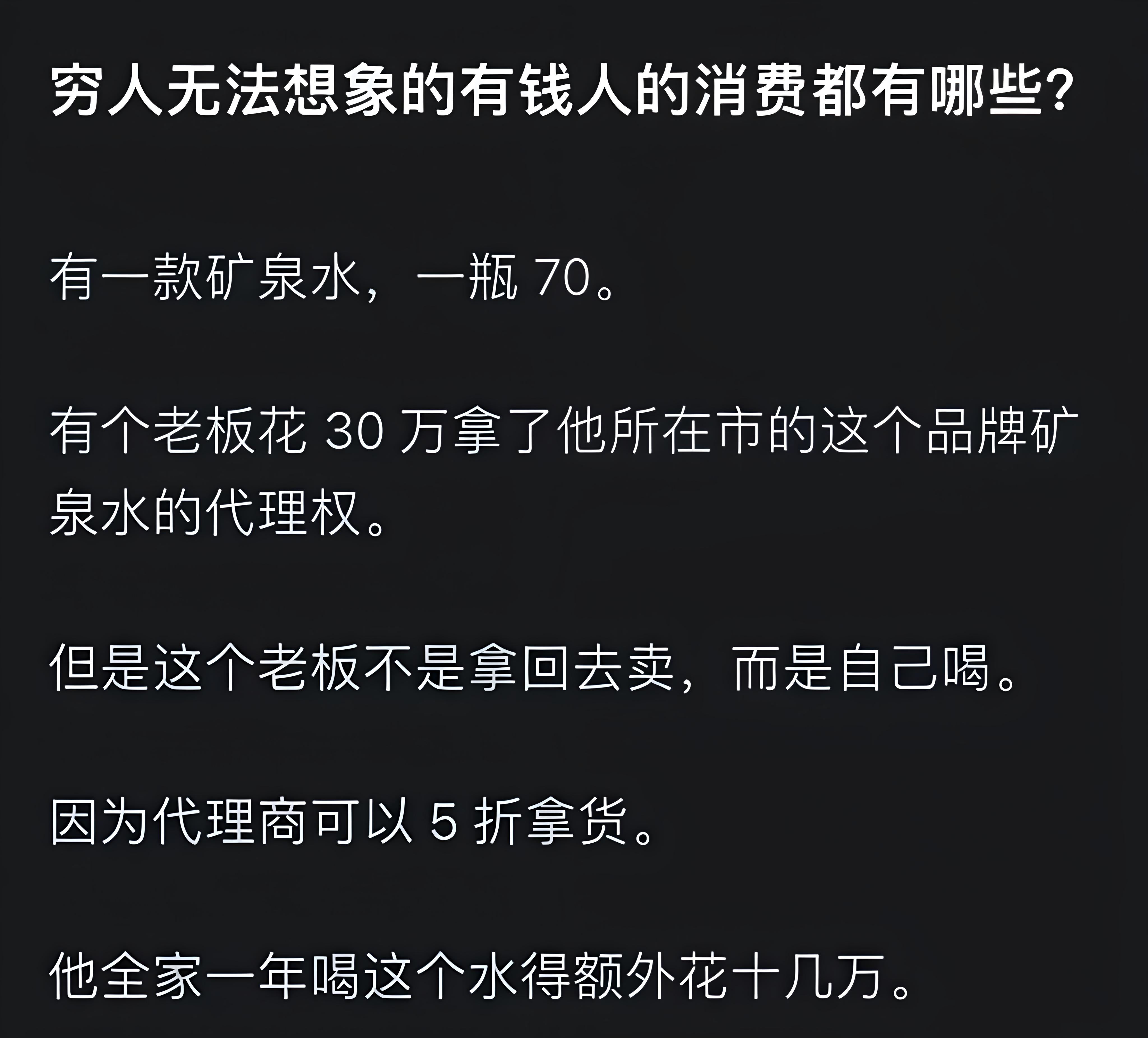 这绝对是穷人无法想象的有钱人消费了。