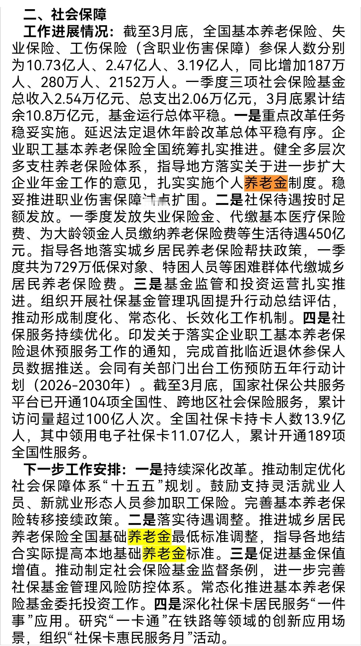 4月28日,人社部召开了一季度新闻发布会,2026年退休人员养老金调整方案虽然没有公布,但是有一个养老金的好消息。