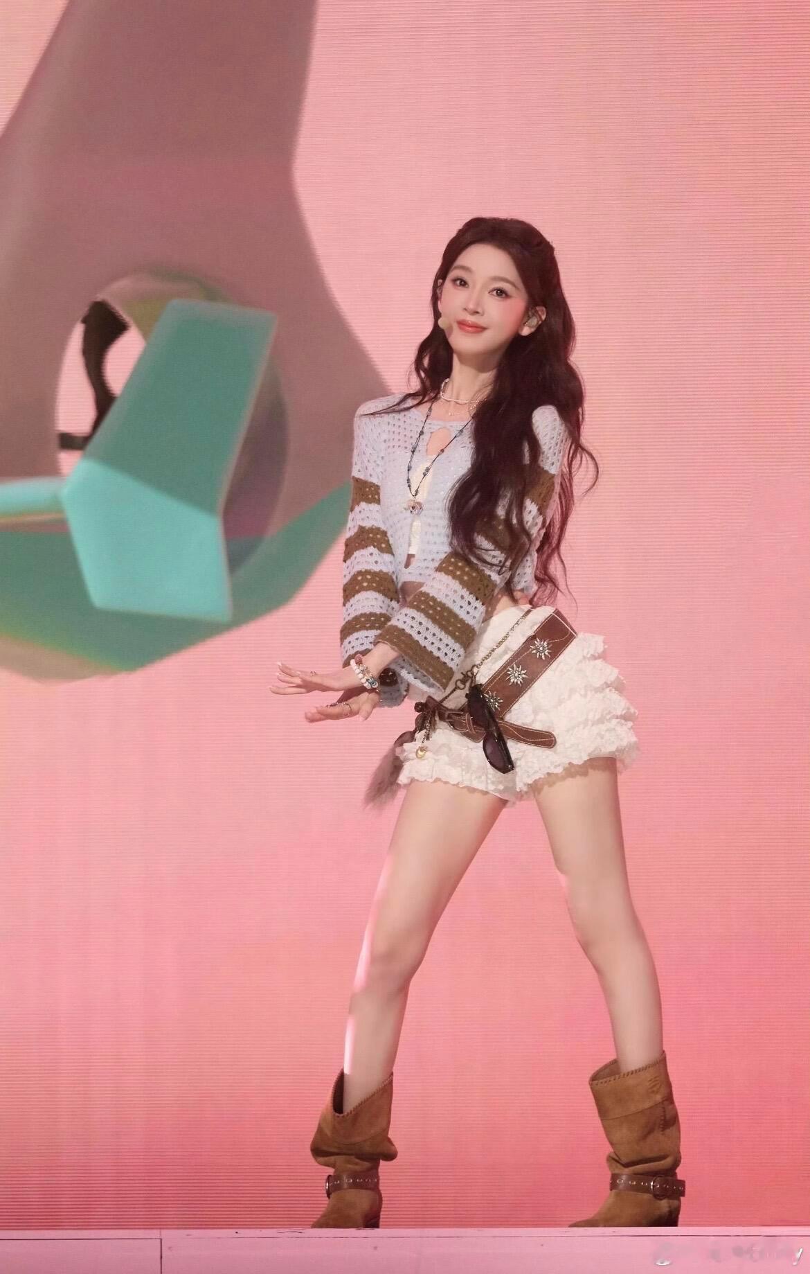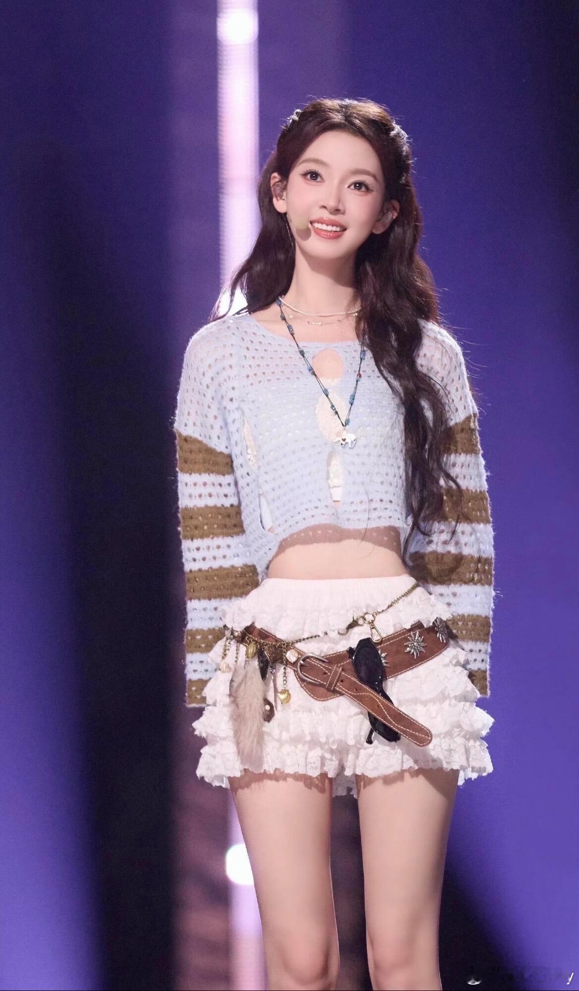 谁懂啊!陈瑶在浪姐这套真的美到我心巴上了清清爽爽的蓝棕条纹针织小衫,露腰设计把少女感直接拉满,搭配层层叠叠的白色蛋糕裙,甜得像咬了一口棉花糖。再踩上一双软乎乎的棕色短靴,配上带点复古感的腰带和串珠配饰,那种又甜又野的西部少女氛围直接拿捏住了!站在舞台上发光的样子,完全就是元气甜妹本人啊!这种不费力的灵动松弛感,真的越看越爱,谁穿谁是行走的画报