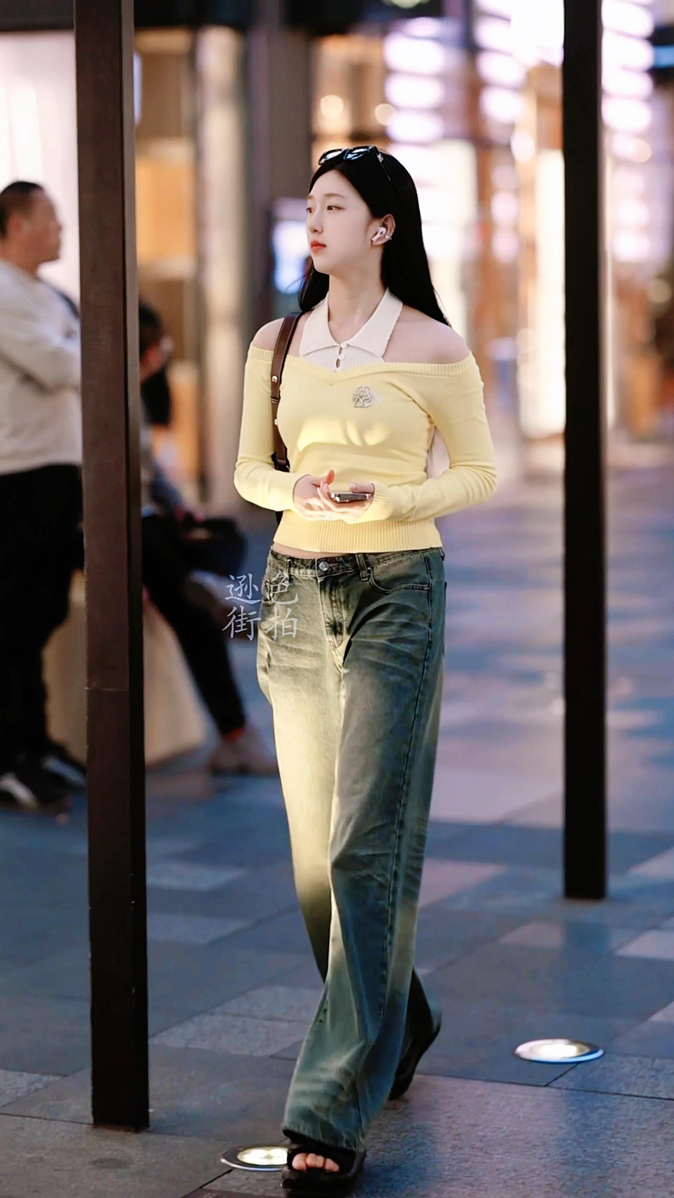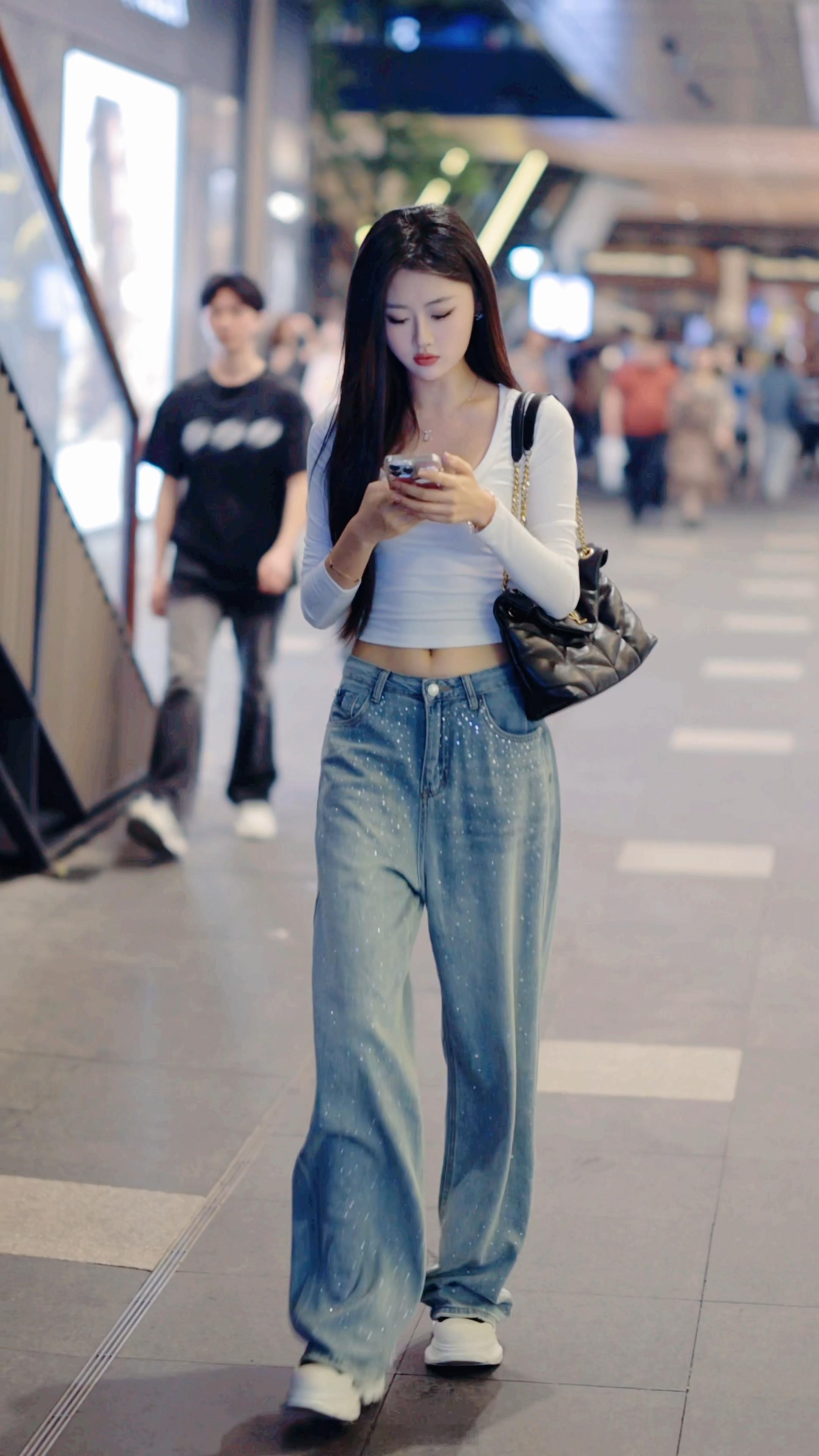 夏日穿搭指南:白色T恤+牛仔裤,轻松自在!🌞👗👠穿搭街拍高清美女好身