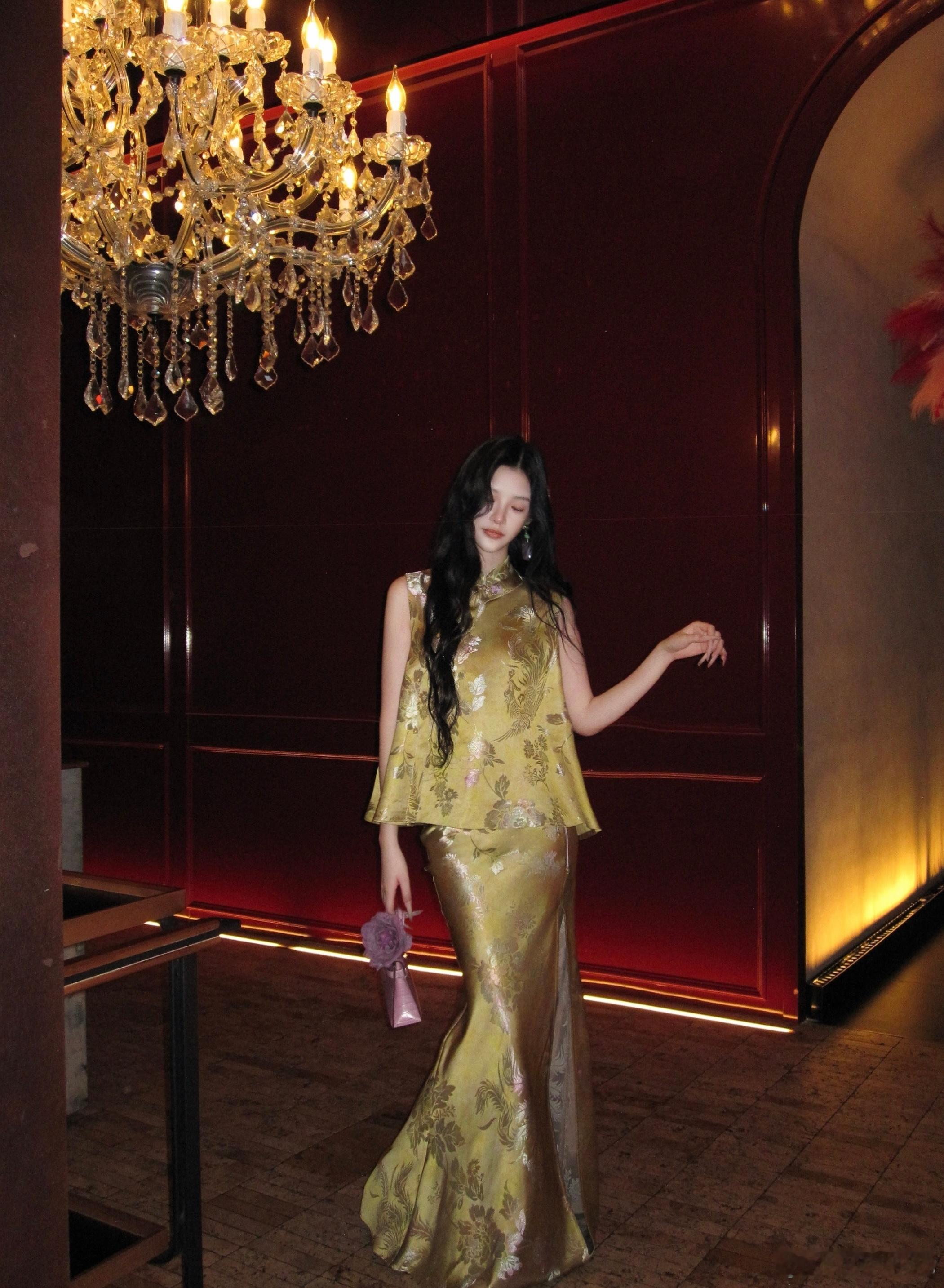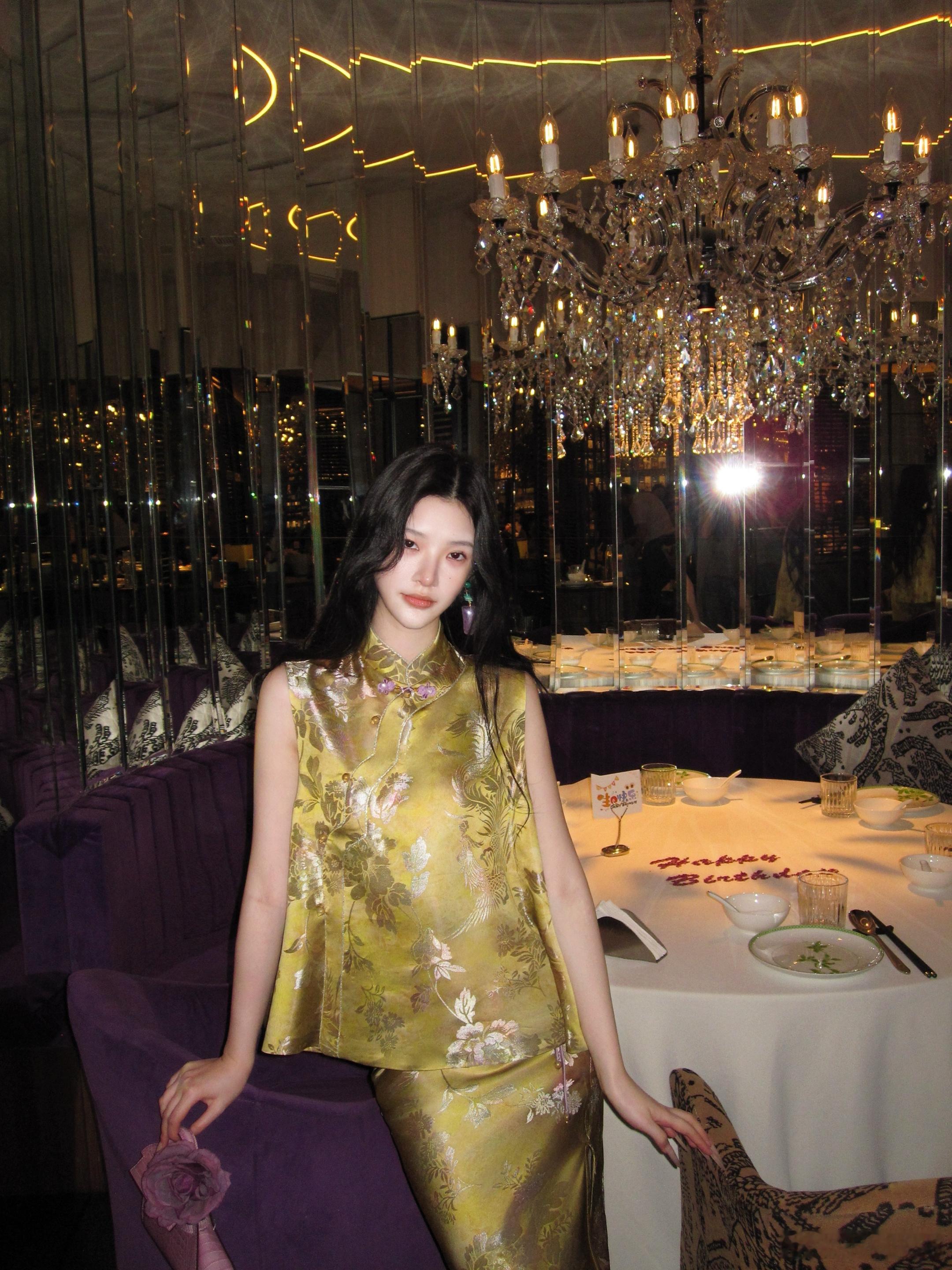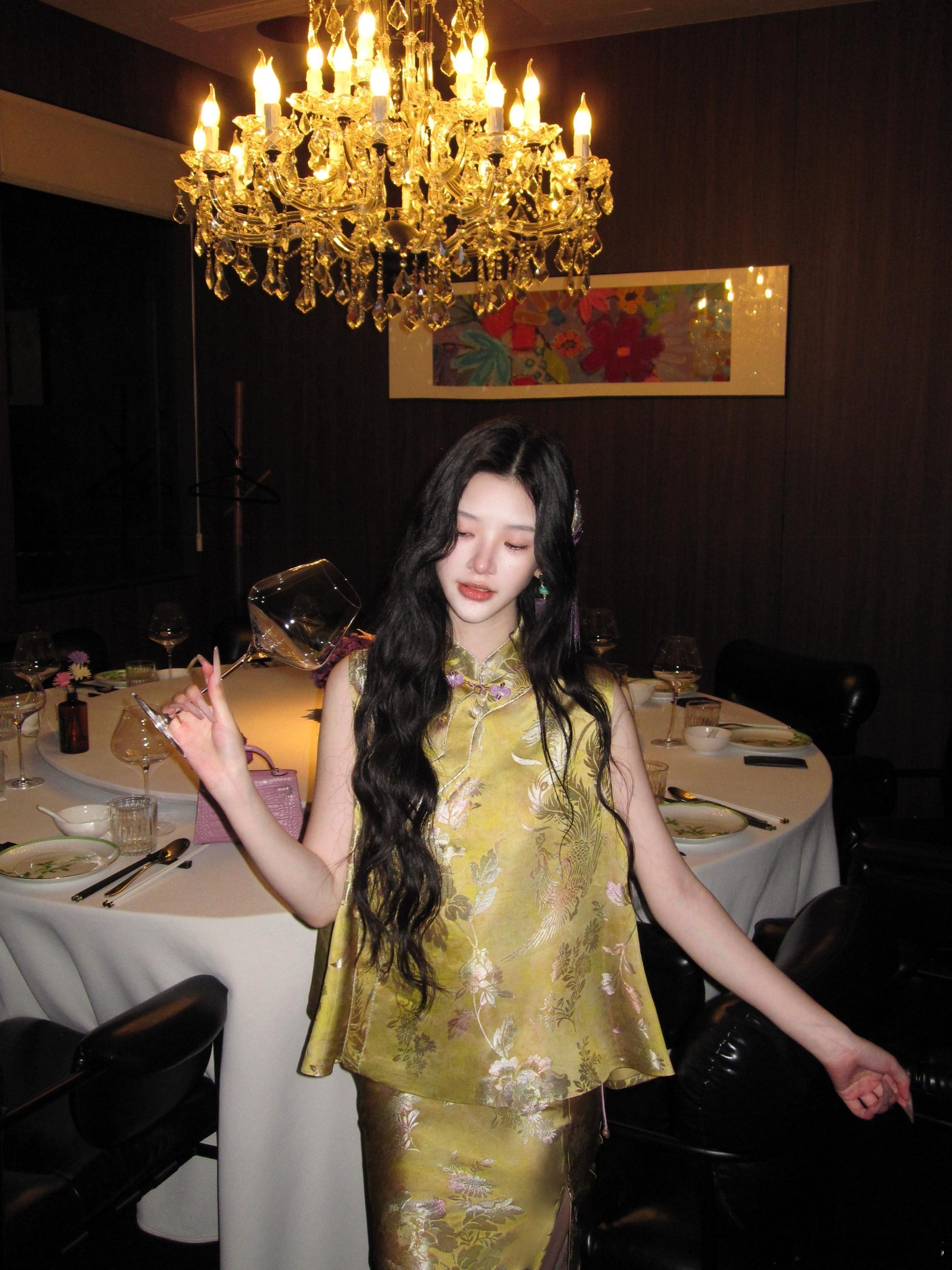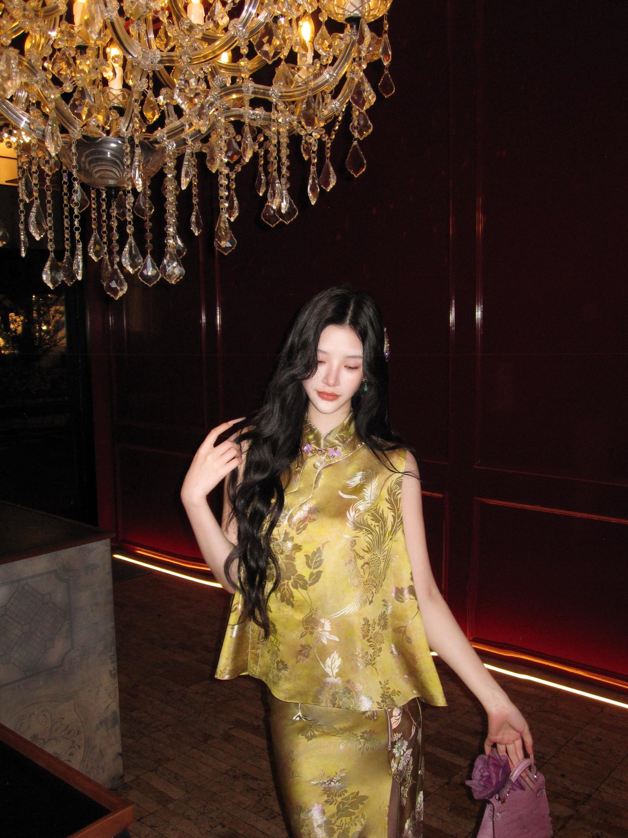 𝑴𝑶𝑺𝑺 𝟒.𝟐𝟖/𝟐𝟎:𝟎𝟎𝒑𝒎【浅金折枝】⚜️⚜️新中式原创提花马甲+半裙套装马甲利落短款廓形,长度刚好落在腰线位置,自然优化身材比例,打造三七分黄金比例;改良式圆领设计,门襟采用细闪包边工艺。半裙弹力牛筋腰头设计,弹力充足,不挑腰围,穿着舒适不勒,同时能优化身材比例,拉长下半身线条,对各种腰型都很友好。新中式穿搭