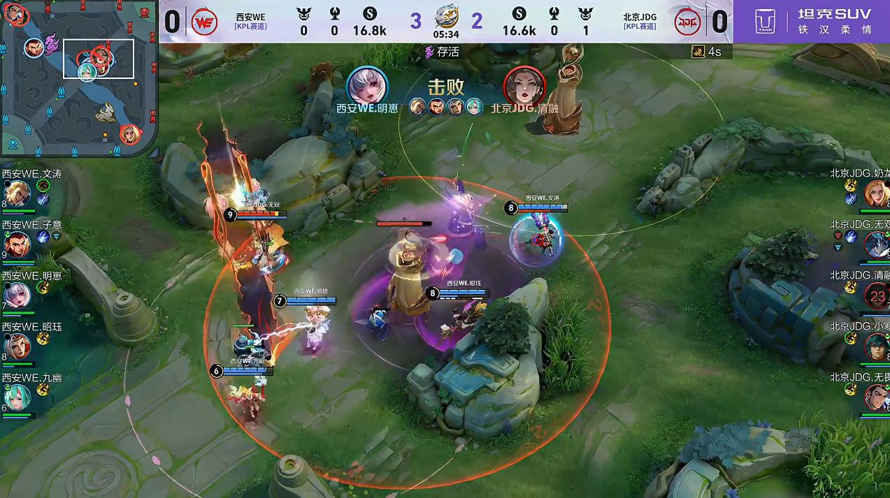 JDG强进野区,清融武则天一路被追先倒,奶龙丝血锁住