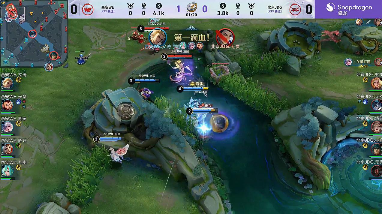 WE上路四包三,小乔给到二技能,无畏大禹交出第一滴血