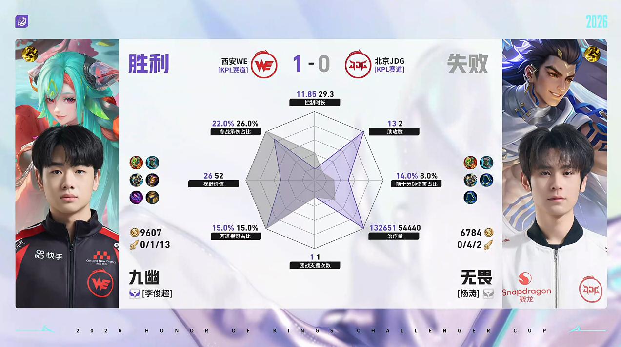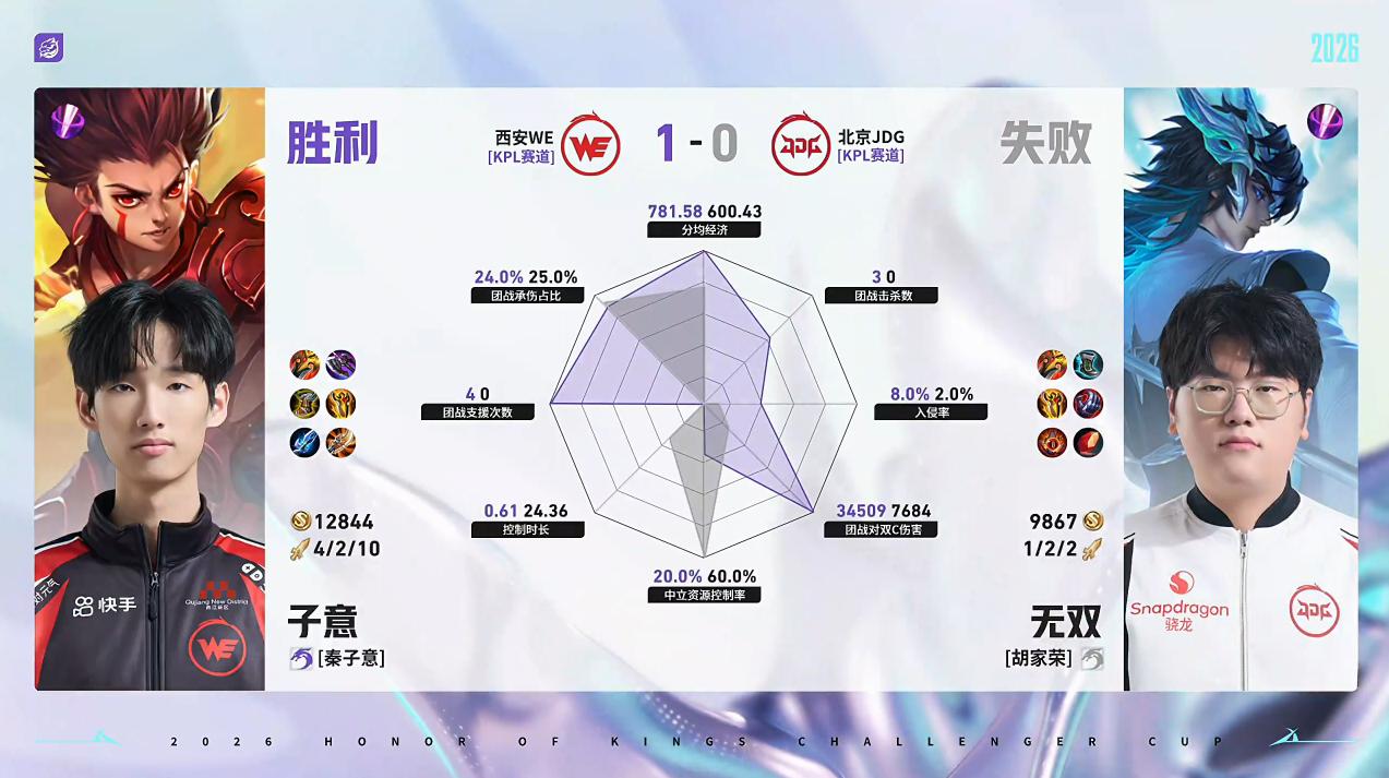 WE/JDG第1局数据对比:昭珏戈娅全包围小寒苍