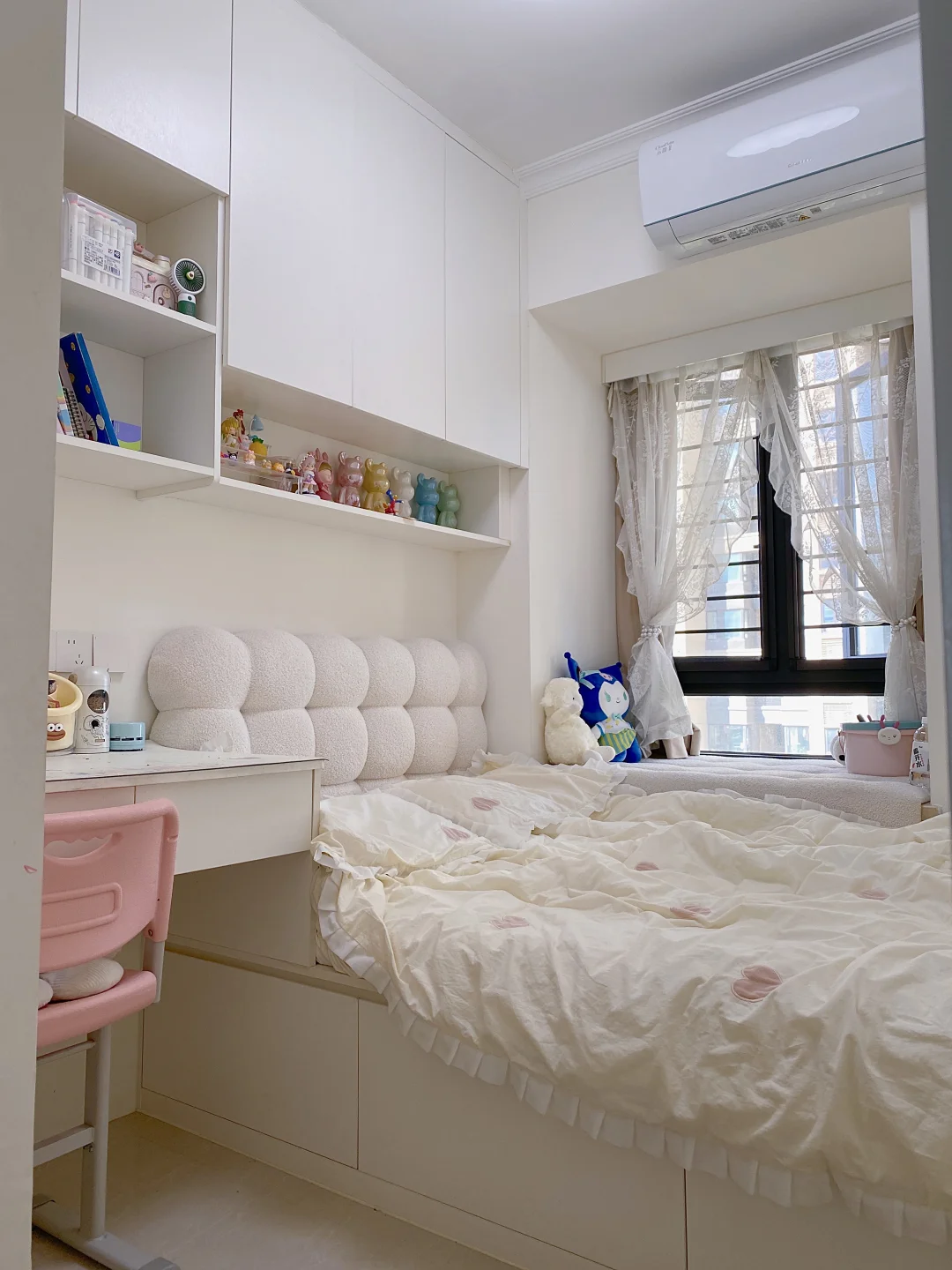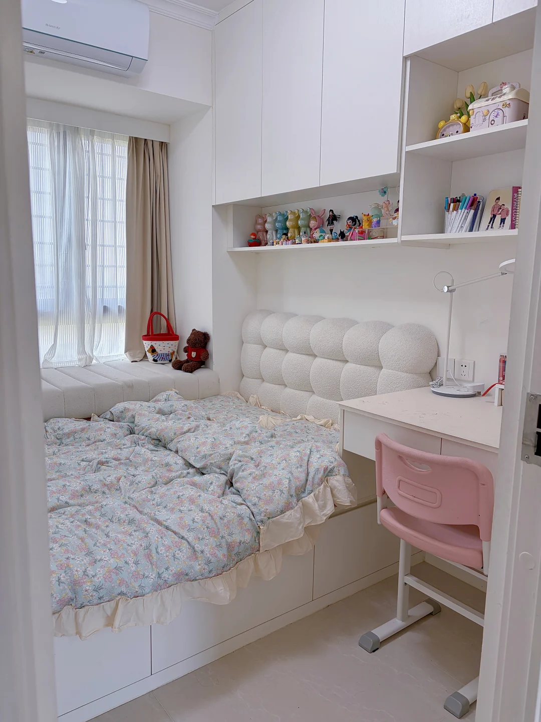 两间儿童房都做了榻榻米多功能房,衣柜、收纳、书桌、书柜、床一站式搞定,空间利用率超高。