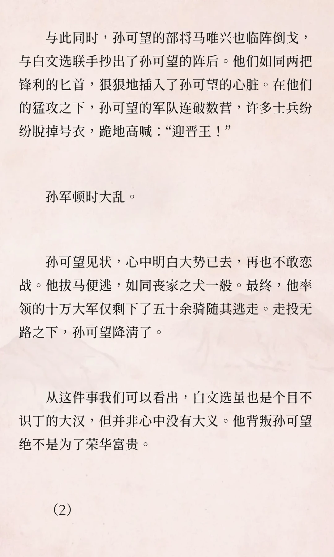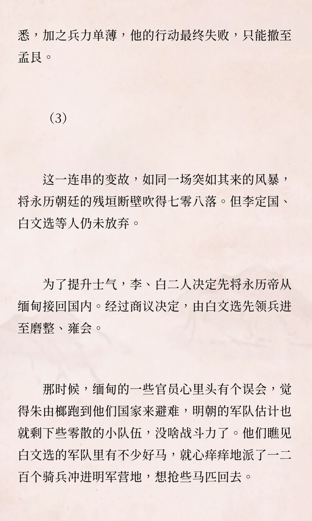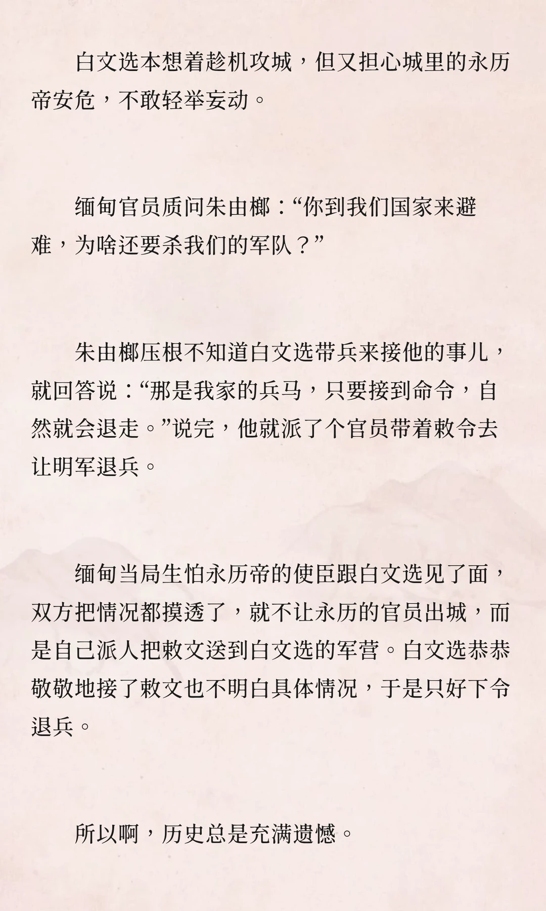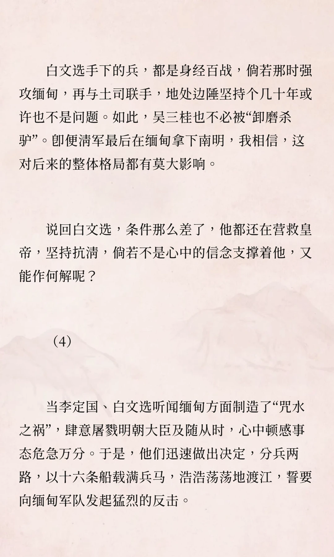 白文选,陕西起义军将领,曾为大西军前军都督,后因不满孙可望野心背叛,协助李定国护送永历帝朱由榔至云南,被封巩国公。后因清军进攻,白文选投降,最终降清并获封承恩公,但未为清廷效力,晚年病逝。