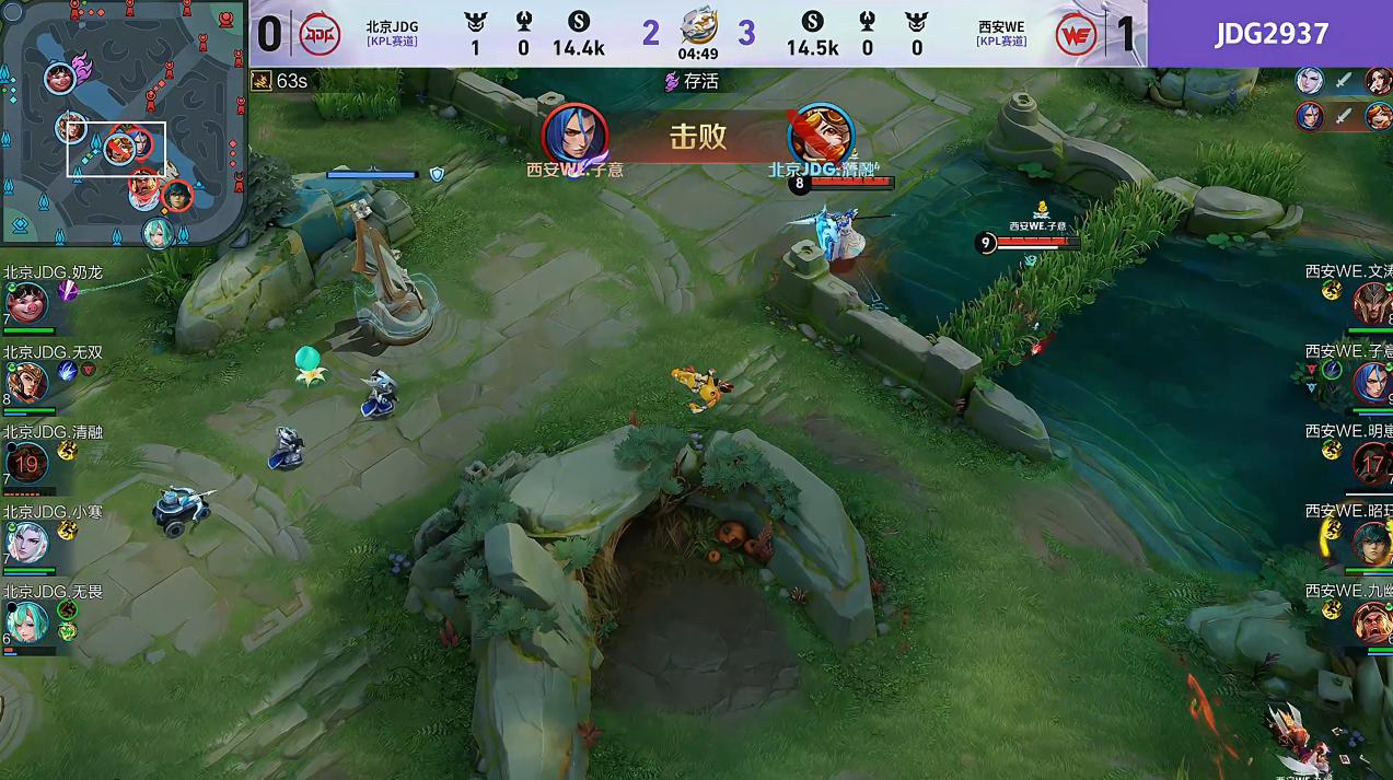 明崽火舞想找小寒机会被反杀,同时子意橘右京中路单杀清融