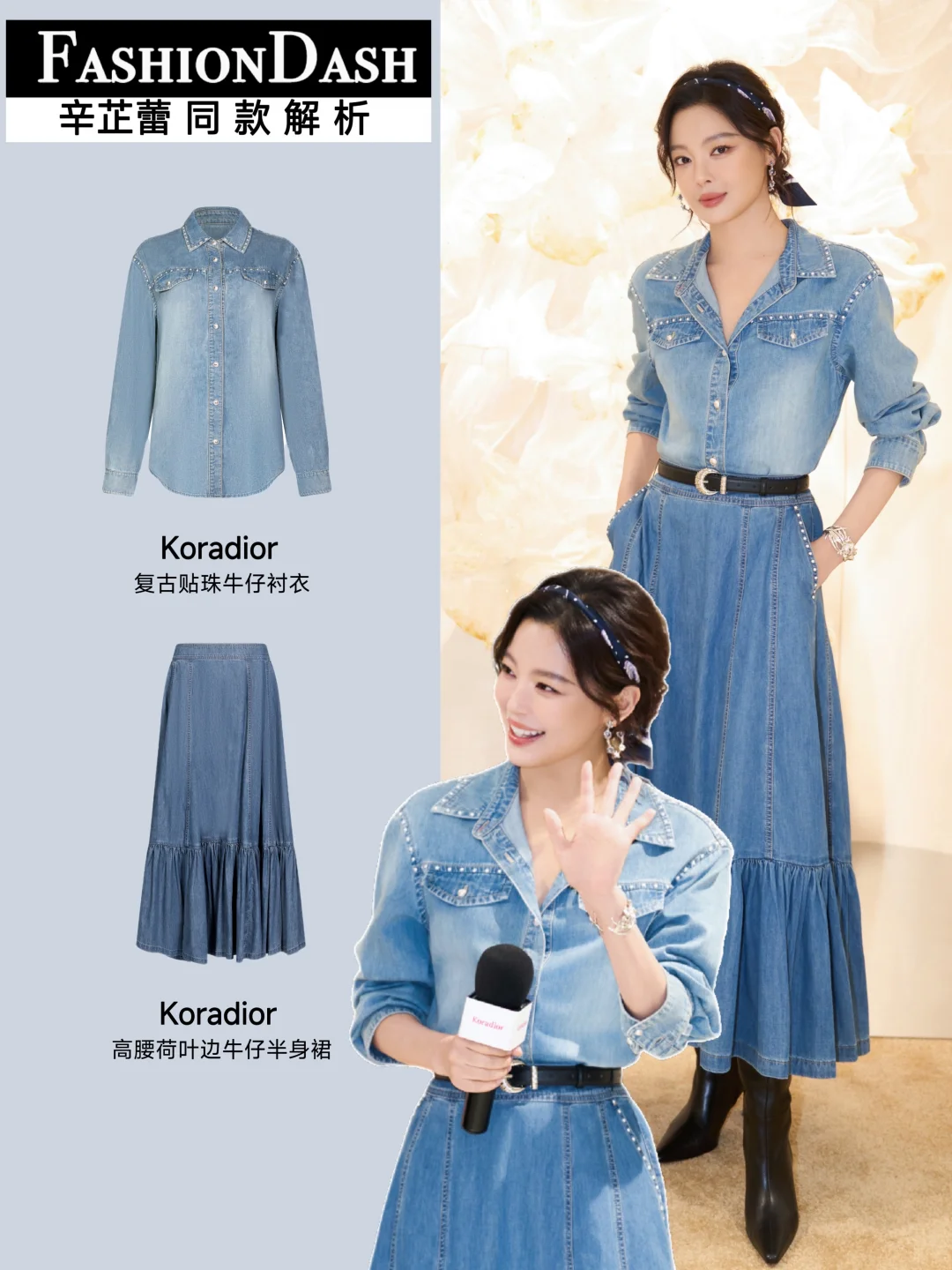 牛仔套装水洗蓝调自带复古柔光,荷叶边半裙搭配一双靴子,把温柔和飒爽平衡得刚刚好。既有老钱风的松弛感,又带着点毫不费力的优雅浪漫,温柔又有力量。