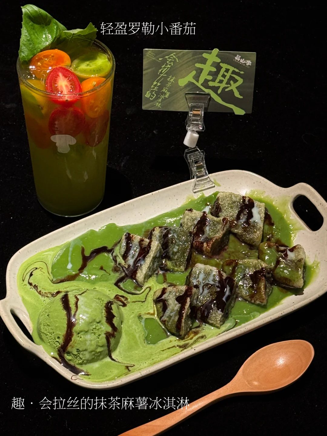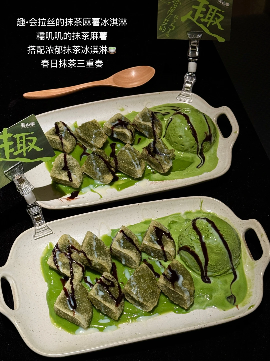 糯叽叽的抹茶拉丝麻薯➕浓郁抹茶冰淇淋🍵➕黑糖抹茶炸麻薯!抹茶三重奏组合相当哇塞!!