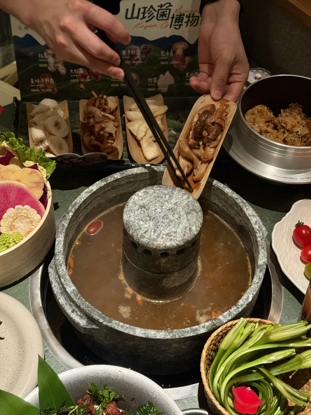 每次来都要把云南菌子火锅吃到爽!还可以涮品质不错的见手青、竹荪皇后、羊肚菌…山菌鲜味让人意犹未尽!汤都要喝光!