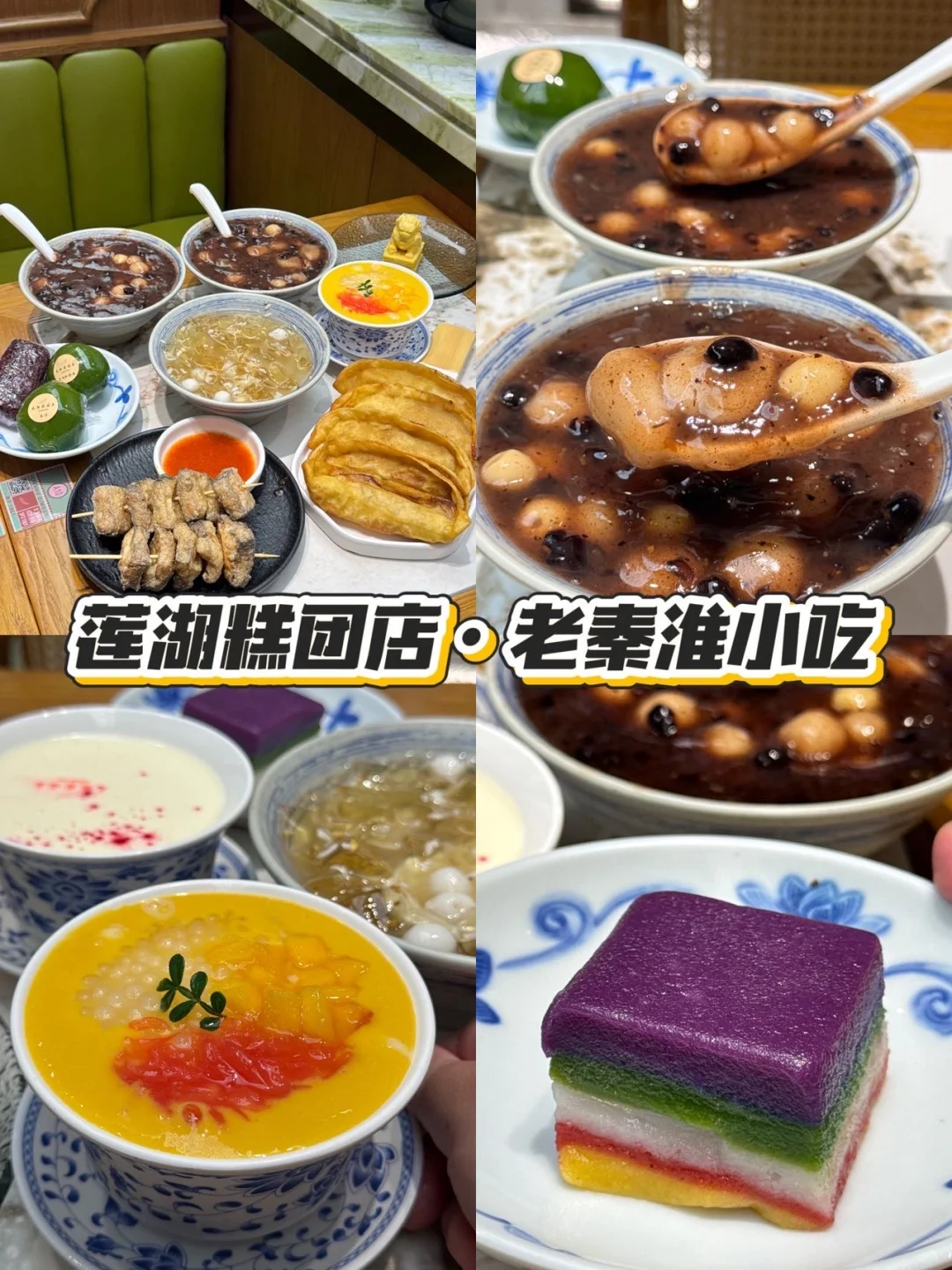 招牌五色糕团软糯Q弹,甜香不腻,颜值和口感双在线。一碗热乎的桂花糖芋苗,芋艿炖得软烂入味,桂花香浓,甜润暖胃,吃完浑身都舒服,是老南京最朴实的甜蜜。