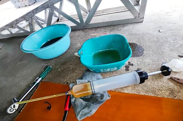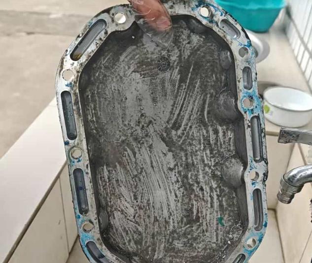 可以用1字螺丝刀去轻轻的撬开,之后旧的机油全部都哗啦啦的流淌出来,黑的就好像是墨汁一样,而且漏了不少。