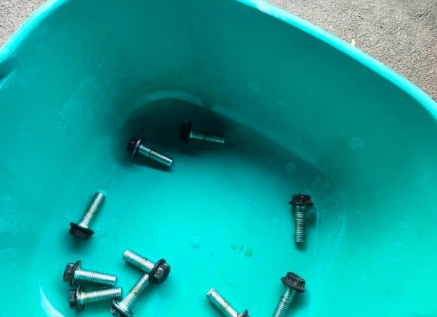 第一步就是把车直接开上坡道,记住一定要拉上手刹,这一点是非常重要的。接着就把13mm的加油口螺丝拆下来,这一根螺丝上面带有磁铁,而且全部都是铁屑。你无论如何一定要清洗干净,在拆卸完毕之后就要把底壳的11颗12mm的螺丝全部的拆卸下来。