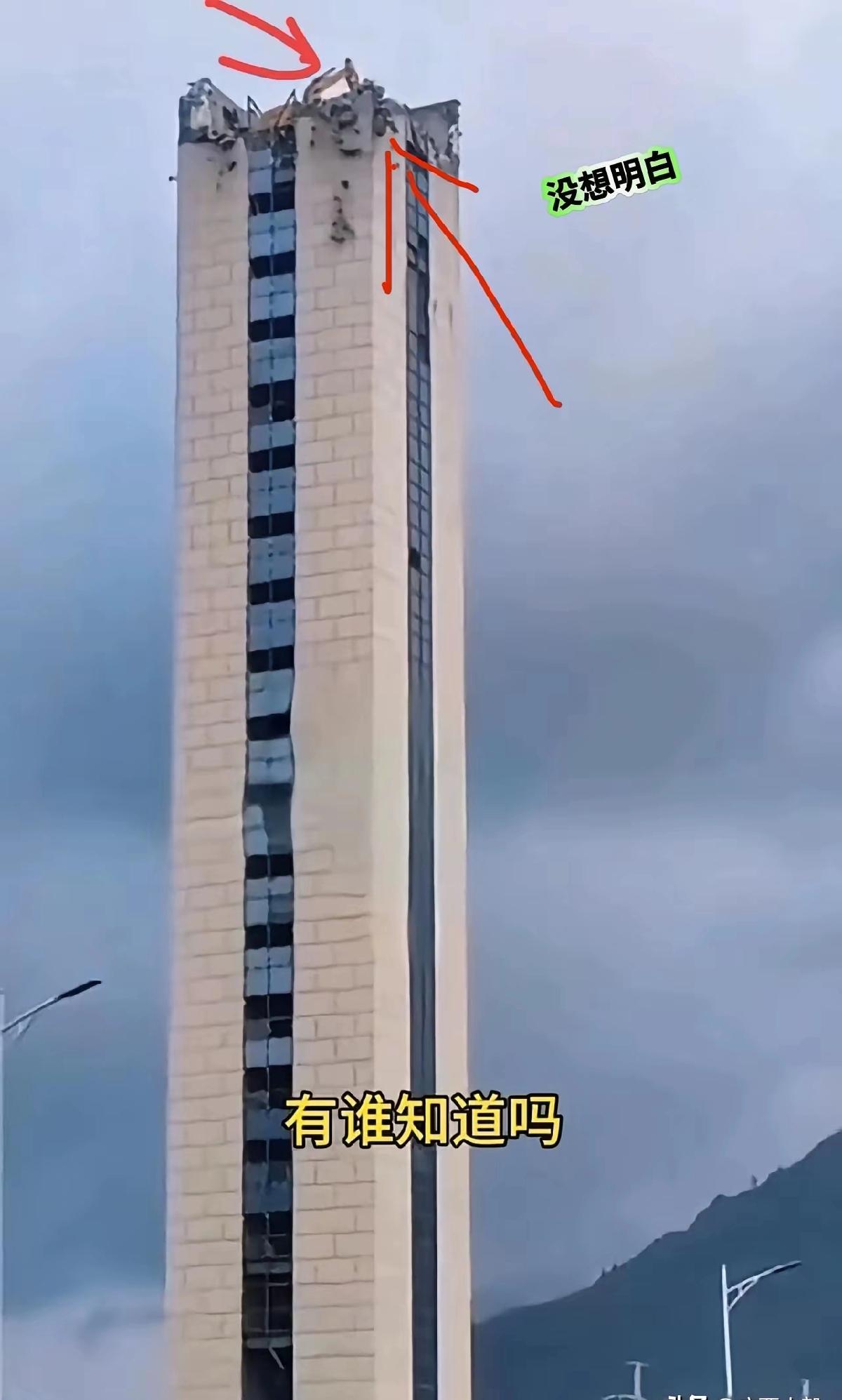 也有人说楼顶的挖掘机是用大型的吊车吊上去的,大型吊车的起重能力不容置疑,但是应该没有那种吊车,能轻轻松松达到这么高的高度吧!