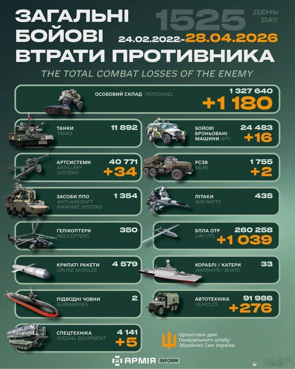 截至2026年4月28日“超级大国”俄罗斯损失战报