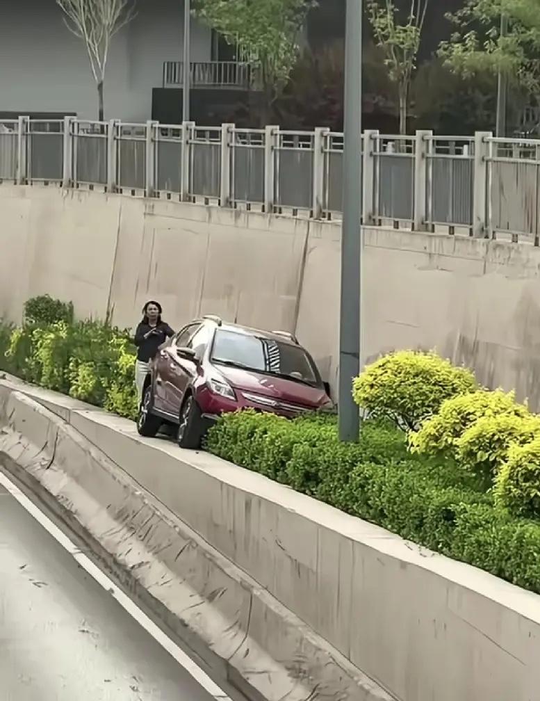 这车是怎么上去的?太原女司机原来是这样毫发无伤的开上2米左右的护墙的,这“技术”