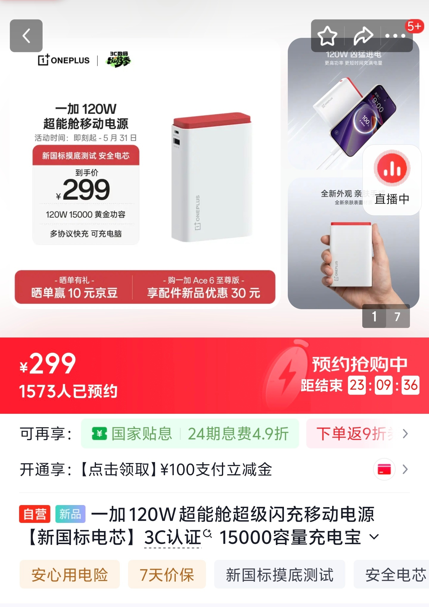 一加新发的这个充电宝看着挺好ov两家私有快充的充电宝真的很少也算满足一下自家用户刚需了兼容PPS 100瓦 补丁:没看清楚,竟然是对标新国标