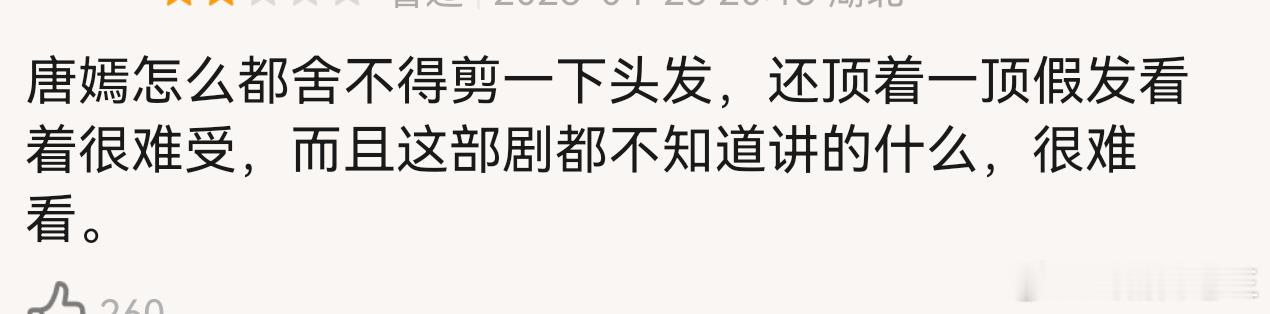 《爱情没有神话》看了四集弃剧了,唐嫣这个短发看着可真别扭。整部剧的滤镜有问题,好