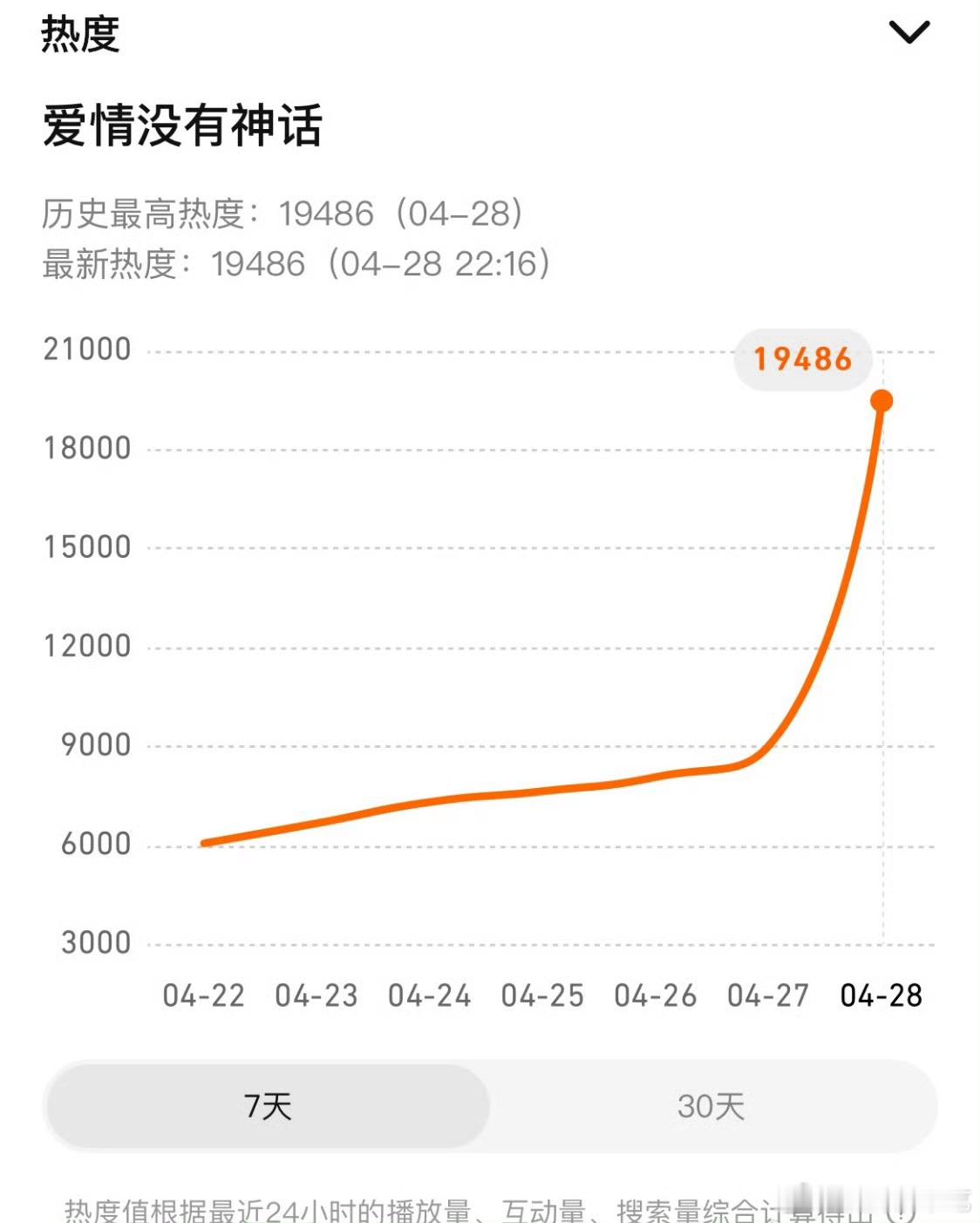 爱情没有神话腾讯站内热度值19486,今晚热度值看着能破20000就不错了……唐