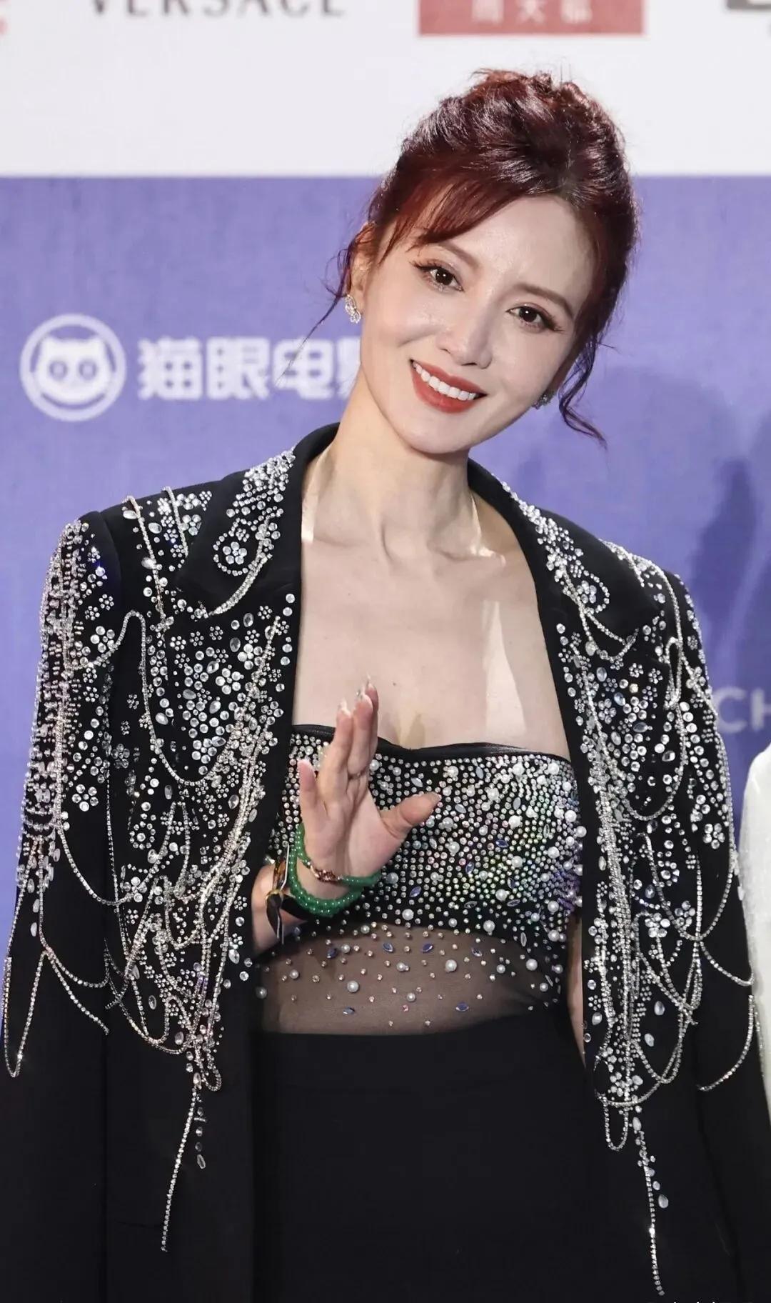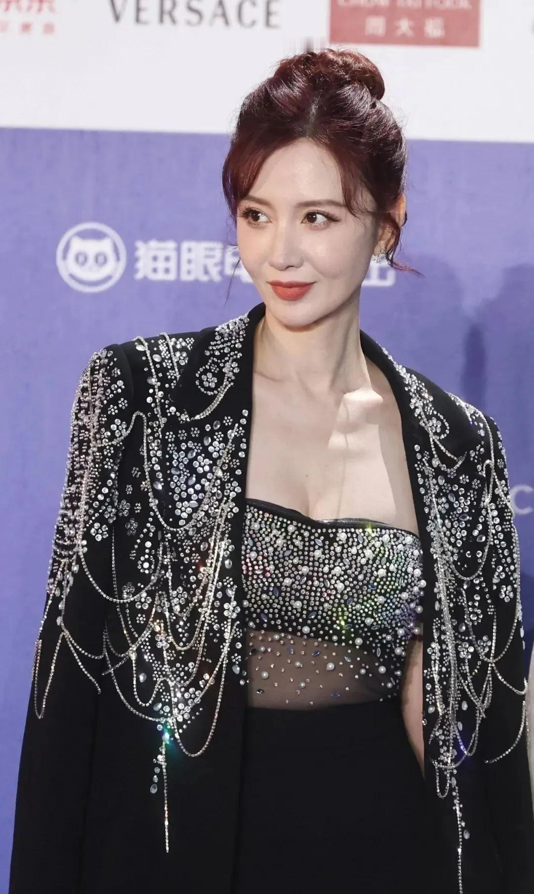 张萌真的美到犯规!💃 黑色系穿搭酷飒十足,钻饰抹胸+流苏西装,性感又不失高级感