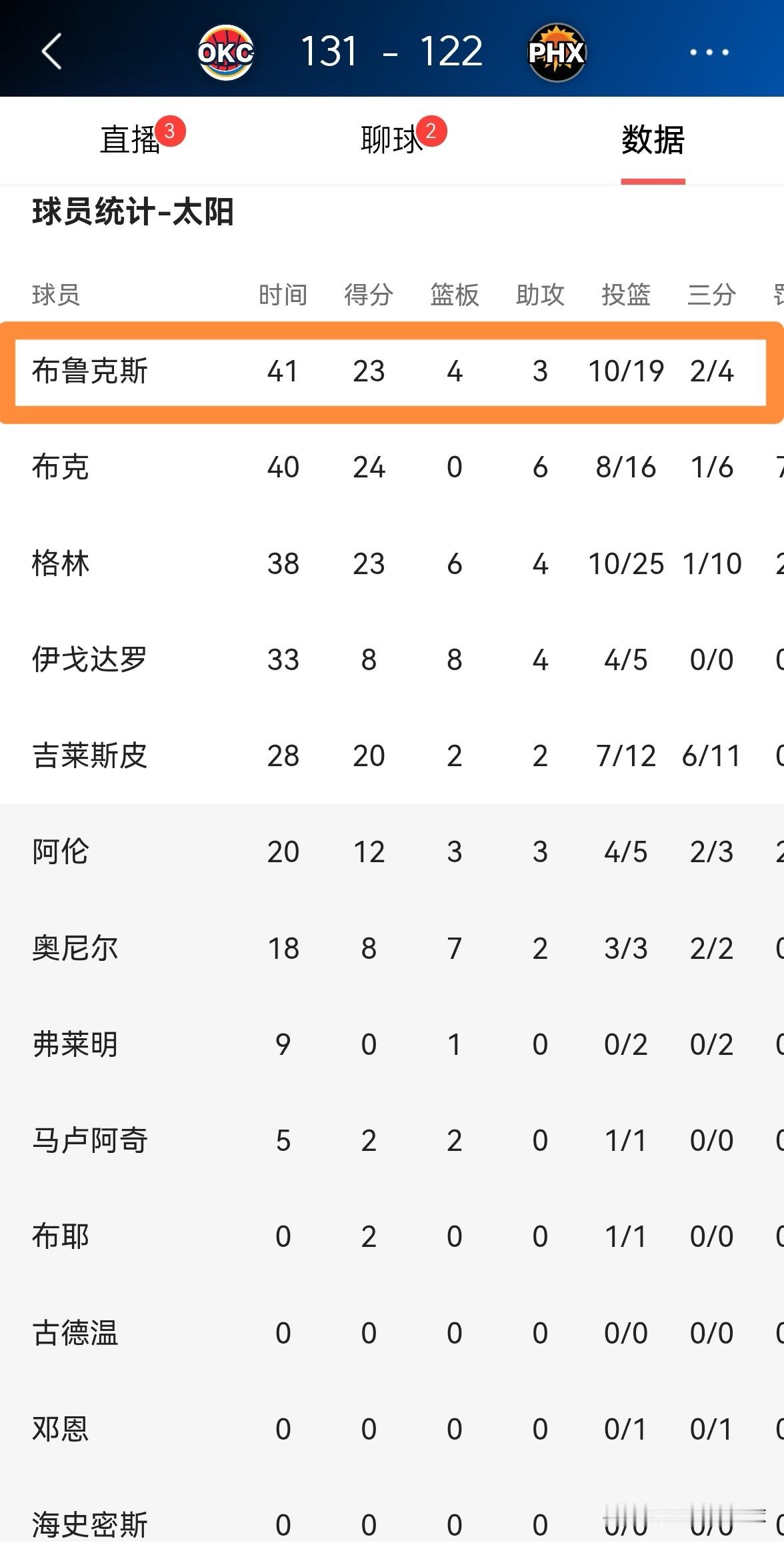 太阳三当家狄龙-布鲁克斯真是燃尽了!虽然今天太阳在首轮G4主场以122:131输给了雷霆,从而以0:4的大比分惨遭淘汰,但是狄龙在攻防两端都拼尽全力,可谓是燃尽了自己。