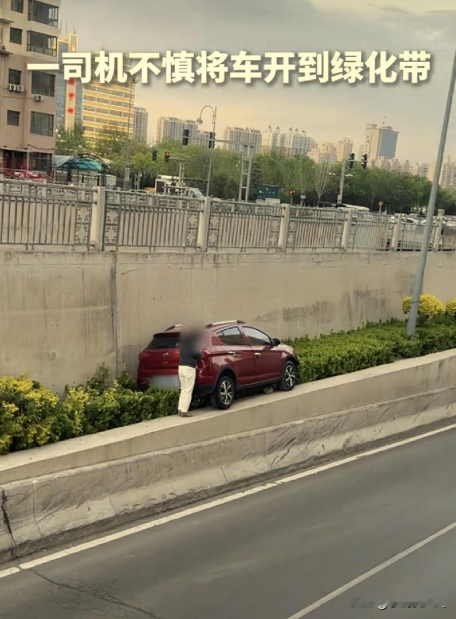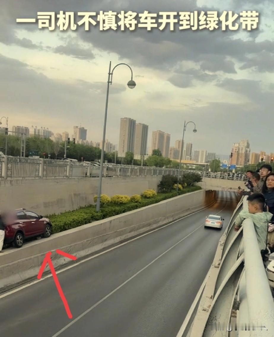 太原,一名女司机因为她的“车技”火出圈了,全网都在猜测,她是怎么把车开到高处绿化带的!