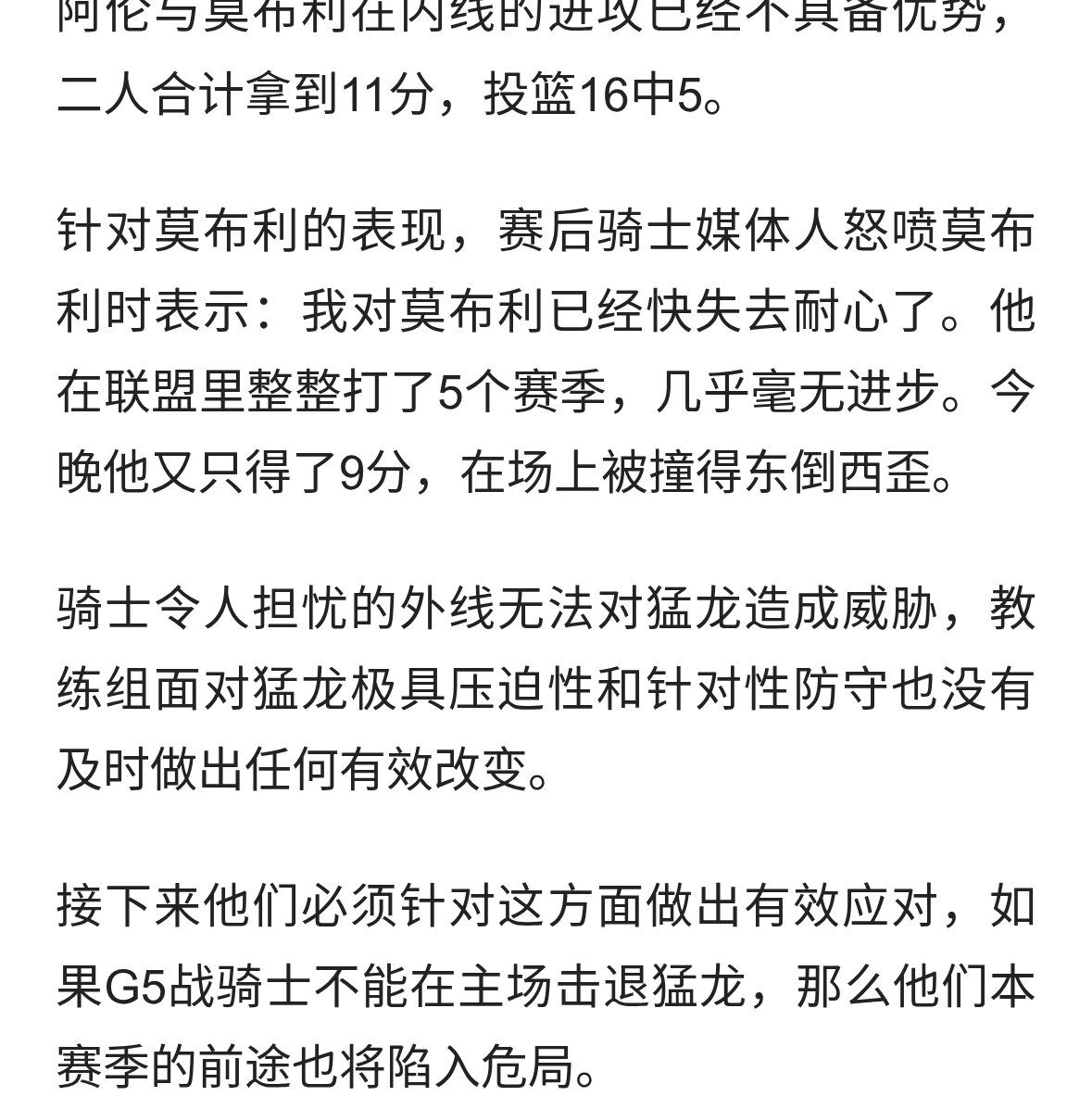 骑士外线不能对猛龙造成威胁,教练组应对也不及时,骑士战局危矣