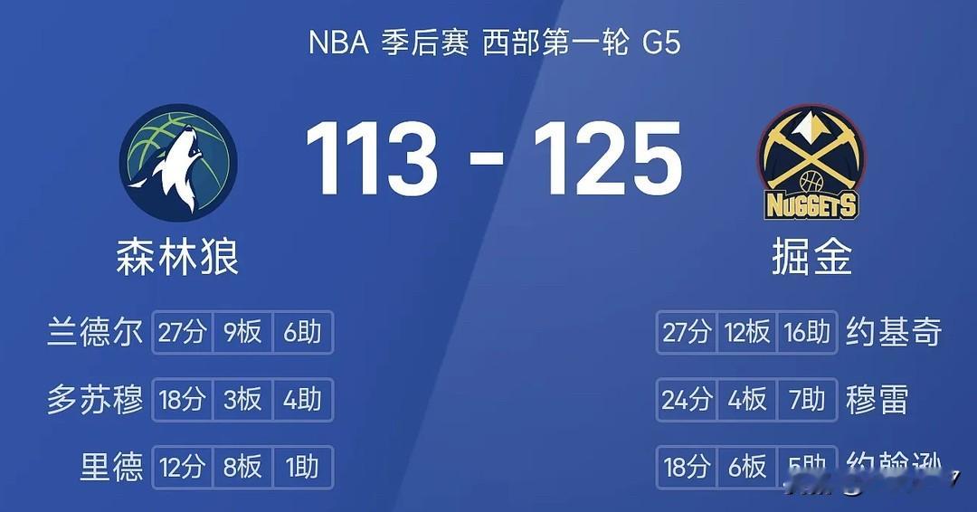 就在刚刚——掘金回到主场终于缓过劲来,125-113拿下森林狼,把系列...
