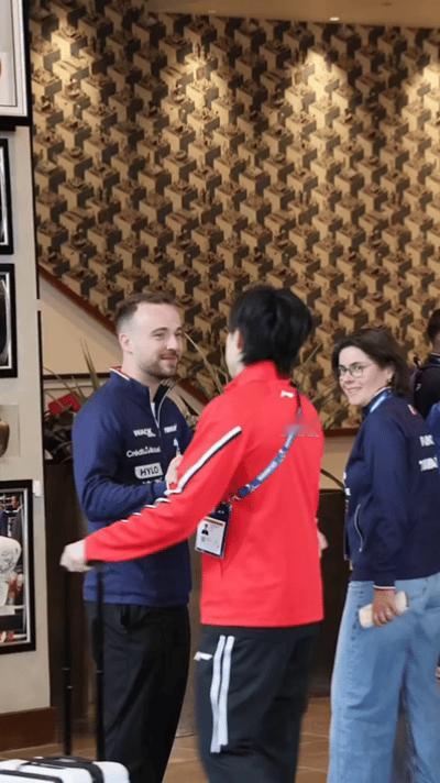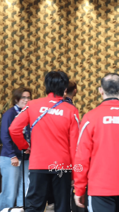 王楚钦下训后的social time,碰到了西蒙高茨,两个人握手聊天。