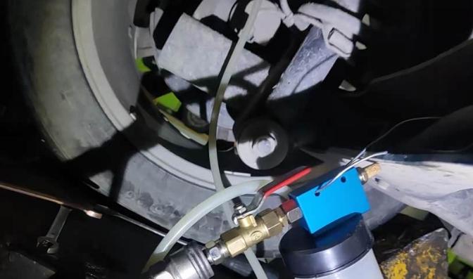 先把油壶里面的旧机油抽干净,不要留下一点点残留。否则两者混合在一起,那么就等同于白换,纯属浪费时间。接着按照右后,左后,右前,左前的顺序给四个车轮挨个排油排气。
