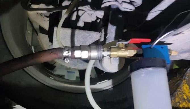 整个过程中我一直盯着师傅操作,一边补新的油,一边去排旧的油液,直到看到油液透亮为止。