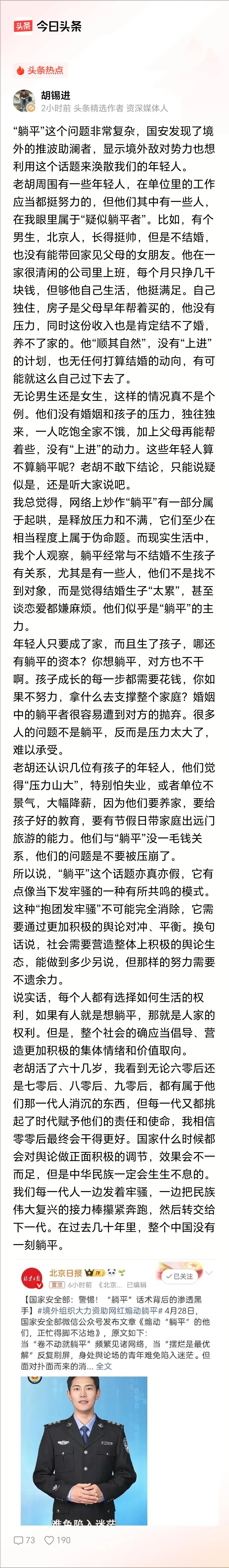 胡锡进点破年轻人躺平“低欲望”真相,他们是压力太大了,只够一人吃饱,那他已经尽力了,这算躺平吗?