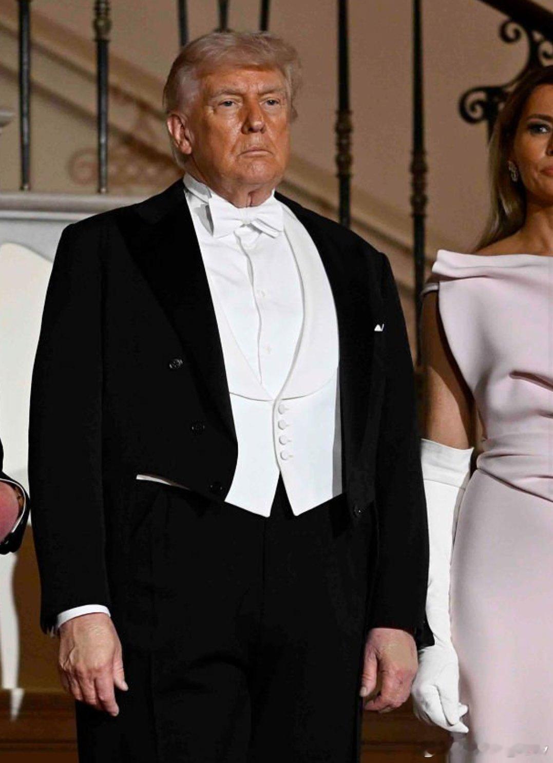 在白宫国宴上,特朗普的两只手背被发现都涂抹了厚层的遮瑕膏。