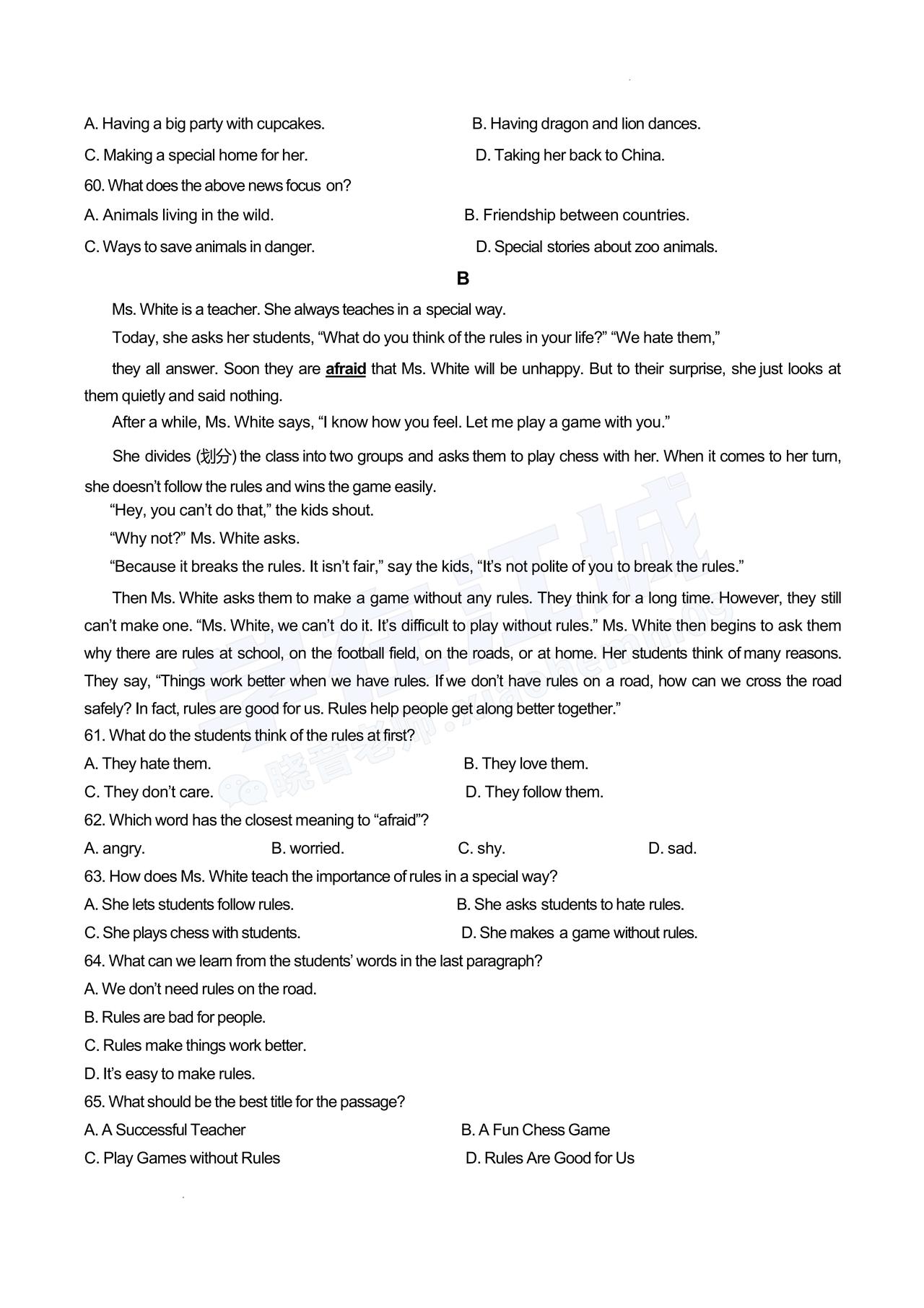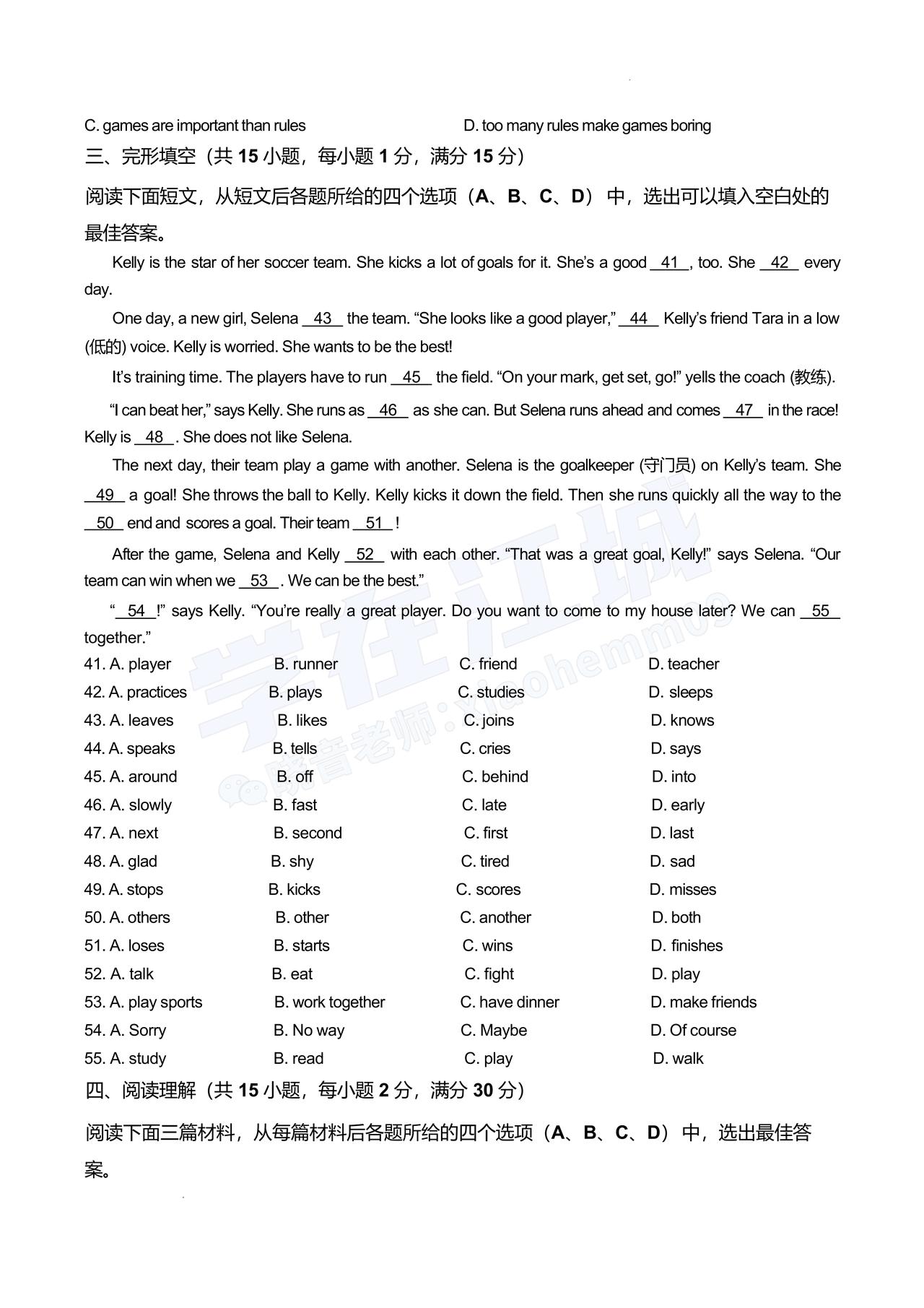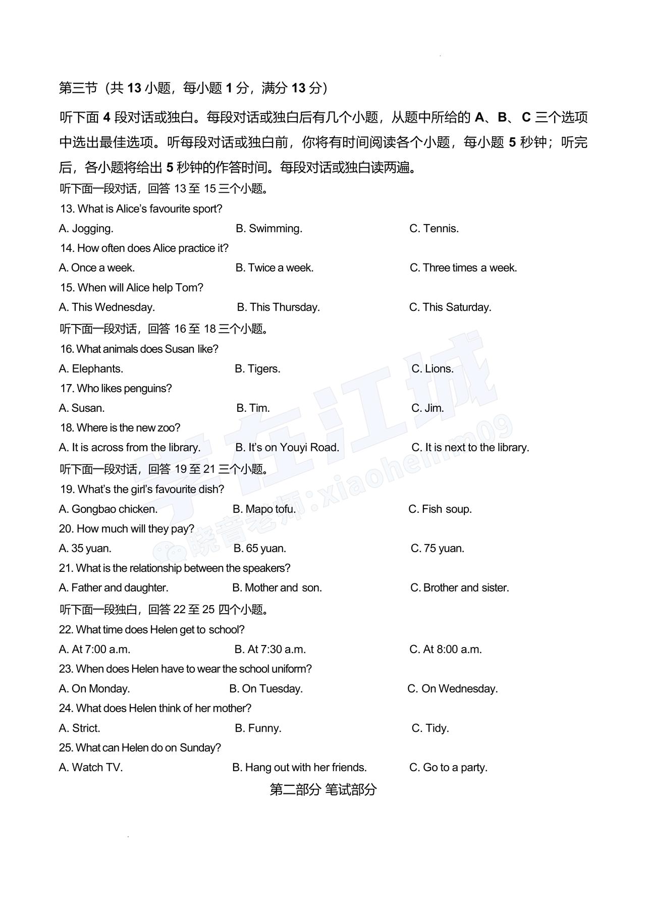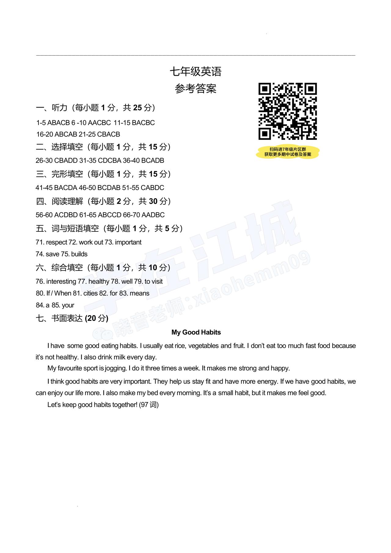 【七年级青山区英语】2025-2026下学期期中试卷及答案
