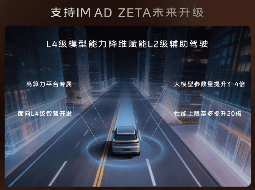 更值得一提的是,车辆提前预埋了L3级感知能力和L4级模型能力,后续通过OTA升级,就能直接迭代至面向L4级的IM AD ZETA系统。现在入手,未来五年的智能驾驶算法升级都有充足空间,车辆不会轻易落伍。