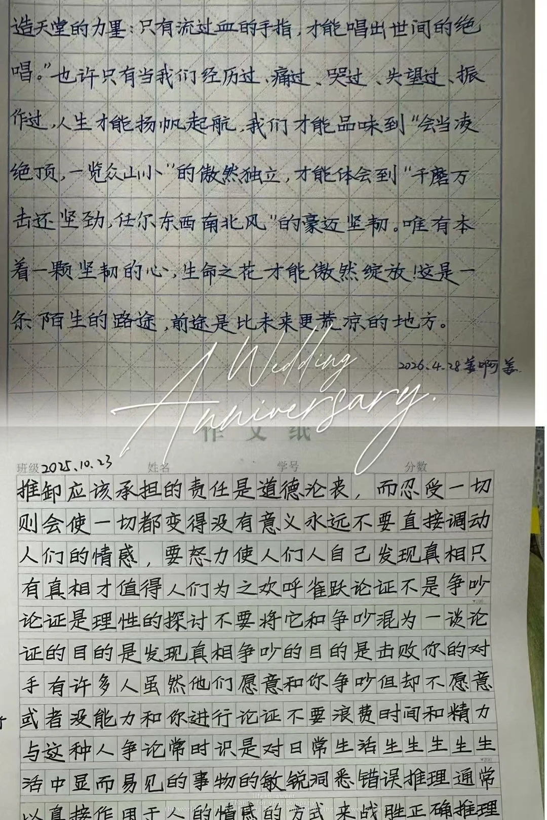 这就是进步,这两位是去年十月份左右加入的,要知道字无百日功,如今半年过去了,进步很大的,硬笔书写就这样,进步了就很难反弹。如果再辛苦一年半载,那就彻底成功,而且高度越来越高,教学能力越来越强。