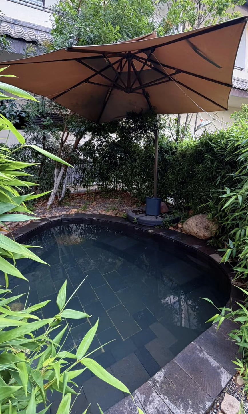 推开门那刻真的被惊喜到!小院里藏着独立汤池,天然温泉水24小时直通房间,不用跟陌生人挤来挤去,私密性直接拉满💯泡进暖乎乎的汤池里,整个人都软乎乎的~