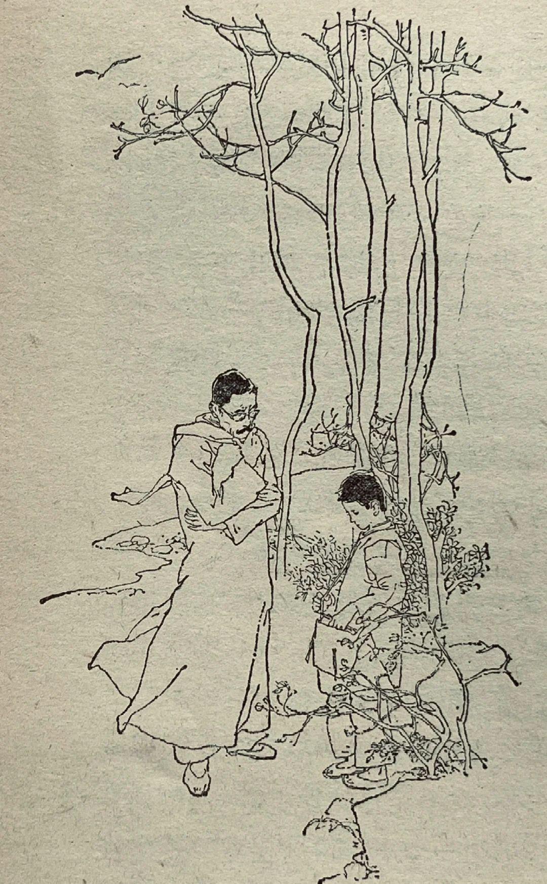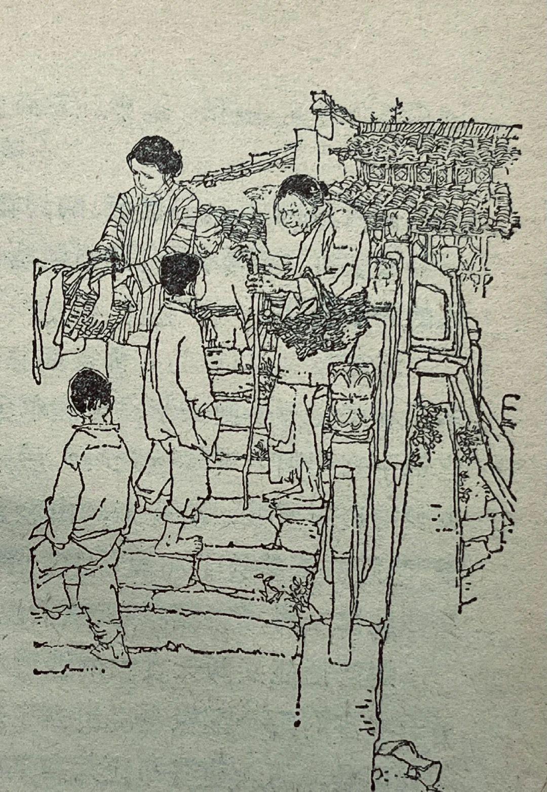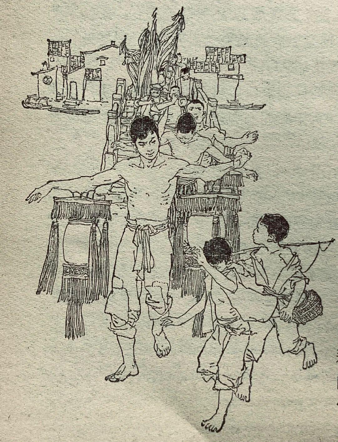 80年代儿童题材插图中的精品,韩硕的线描干净利落,既保留了传统白描的韵味,又以松弛的形态造型传递出角色的温度,人物动态生动,情感细腻,寥寥几笔便勾勒出童年的纯真与江南的烟火气。