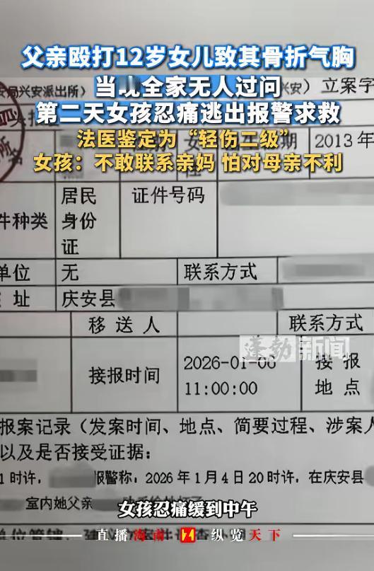 不是,12岁的小姑娘,就因为跟继母生的弟弟互相滋了点水,被亲生父亲打到肋骨骨折、肺挫伤、气胸。