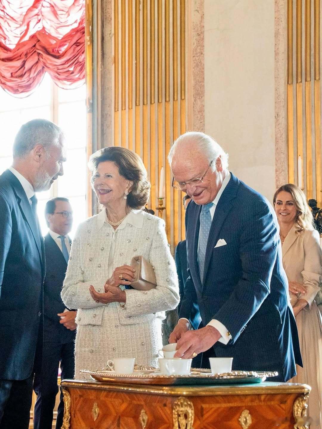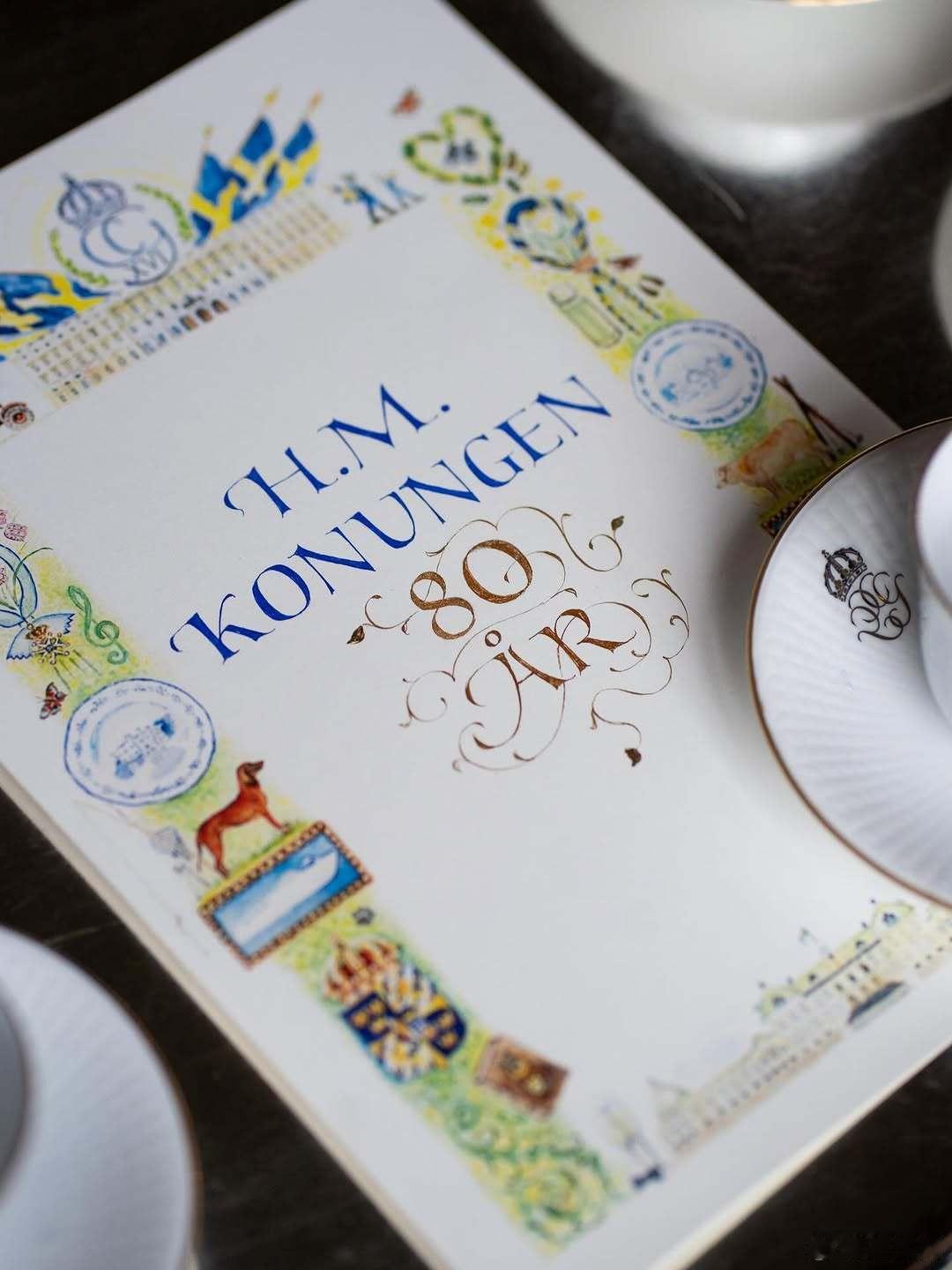 瑞典王室 🇸🇪4月29日,在国王80寿辰前夕,王室宫廷工作人员今日齐聚,向国王送上全体员工准备的生日礼物。这份由宫廷员工集资筹备的礼物,是一套定制咖啡餐具套装,饰有国王夫妇共用的花押字母纹章。该餐具为瑞仕典雅盛典系列(Swedish Grace Gala),出自瑞典知名瓷器品牌罗斯特兰(Rörstrand)。世界各国王室瑞典国王80大寿