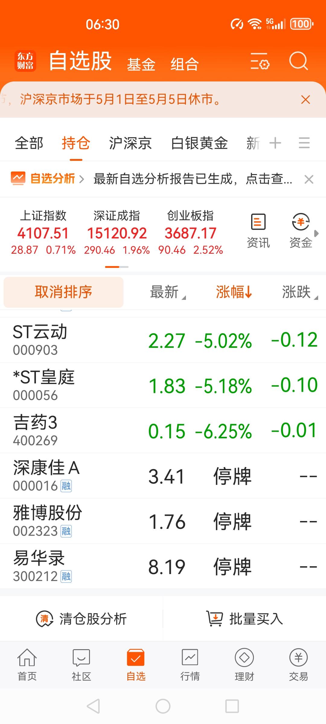上市公司的雷基本上排完了吧,手上一下子计提了3个sT,sT雅德,sT康佳,sT易录,还有一个闻泰科技也即将sT闻泰了。加上之前的sT云动,sT皇庭,退到三板的吉药3,大部分都是国资背景。最狠的是康佳,整个把公司亏没了还不行。收入98亿,亏损125亿,关门啥也不干,这样还可省27亿。还有雅博差了700万营收,带上sT。这么大公司,光伏项目很好,几百万就难住了。股市选国资背景的也不行啊。