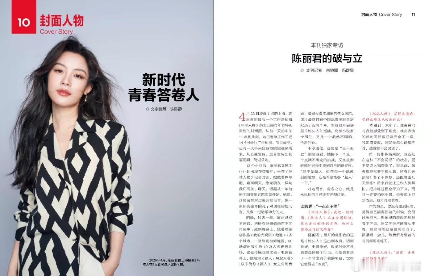 陈丽君环球人物封面!还是五四特别策划的封面!陈丽君优秀