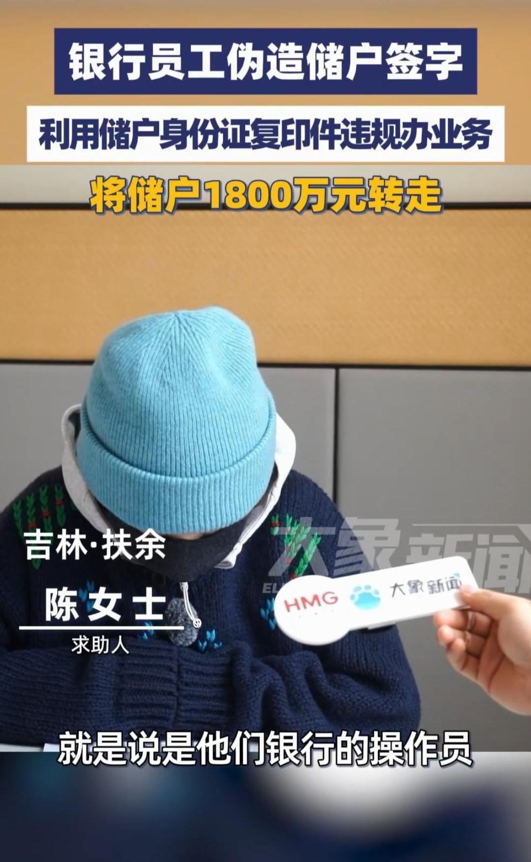 吉林扶余市,一女子在银行存了1000万元。急用时去查账,发现卡上仅剩1万元。她调出流水一看,钱全被转到了一名银行员工的个人账户里。