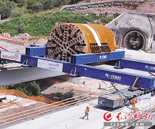 长沙晚报4月20日讯,近日,铁建重工一台开挖直径9.36米的土压平衡盾构机,在意大利西西里岛墨西拿-卡塔尼亚铁路项目成功完成主机不拆解整体托举过桥。该工法在全球掘进机行业属于首创,节省了大直径盾构拆机、转运、再组装的人力、物力和工期成本,成为行业降本增效的典型案例。