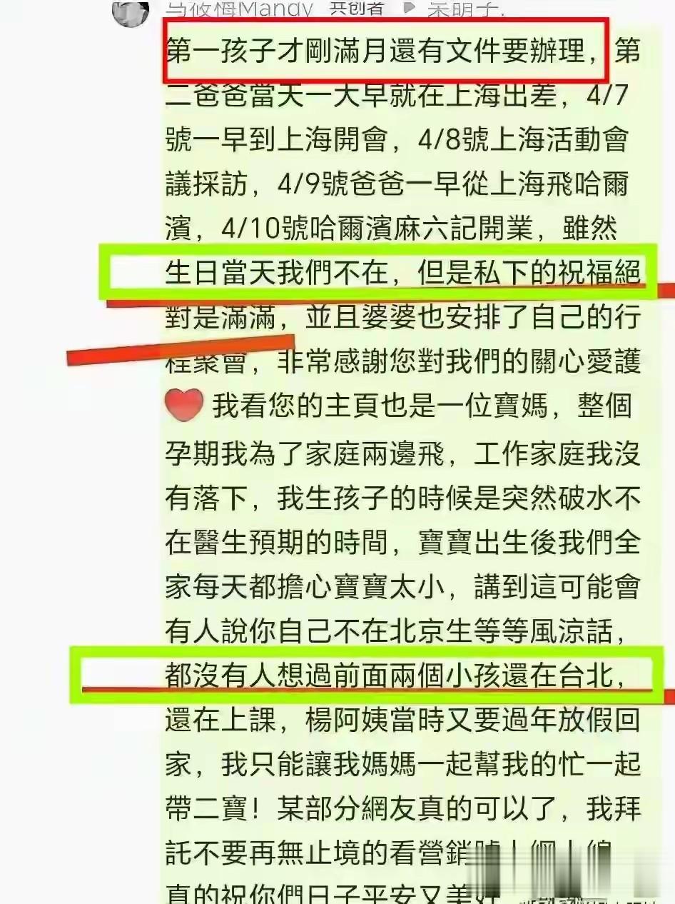 后来马筱梅又在评论区辟谣,为什么不回京生孩子,原因就在于两个大的孩子没人带,小杨阿姨家中有喜事儿,回去忙了。这下让小杨阿姨陷入更大的质疑,认为她关键时刻掉链子。